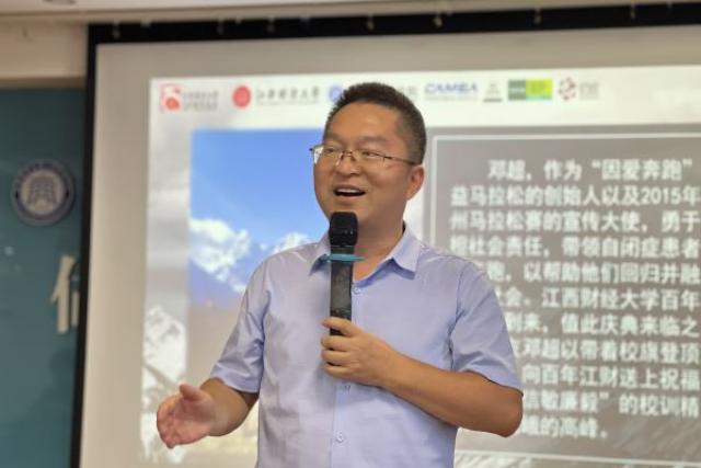 “2015年广州马拉松宣传大使”、“为星星的孩子奔跑”、“让江财校旗在珠峰飘扬”……这是对江西财经大学校友邓超的描述。9月14日下午,在工商管理学院党委书记贺三宝的邀请下,邓超在中至大楼416活动室为工商学子分享他与马拉松、与公益事业、与母校江财的故事。