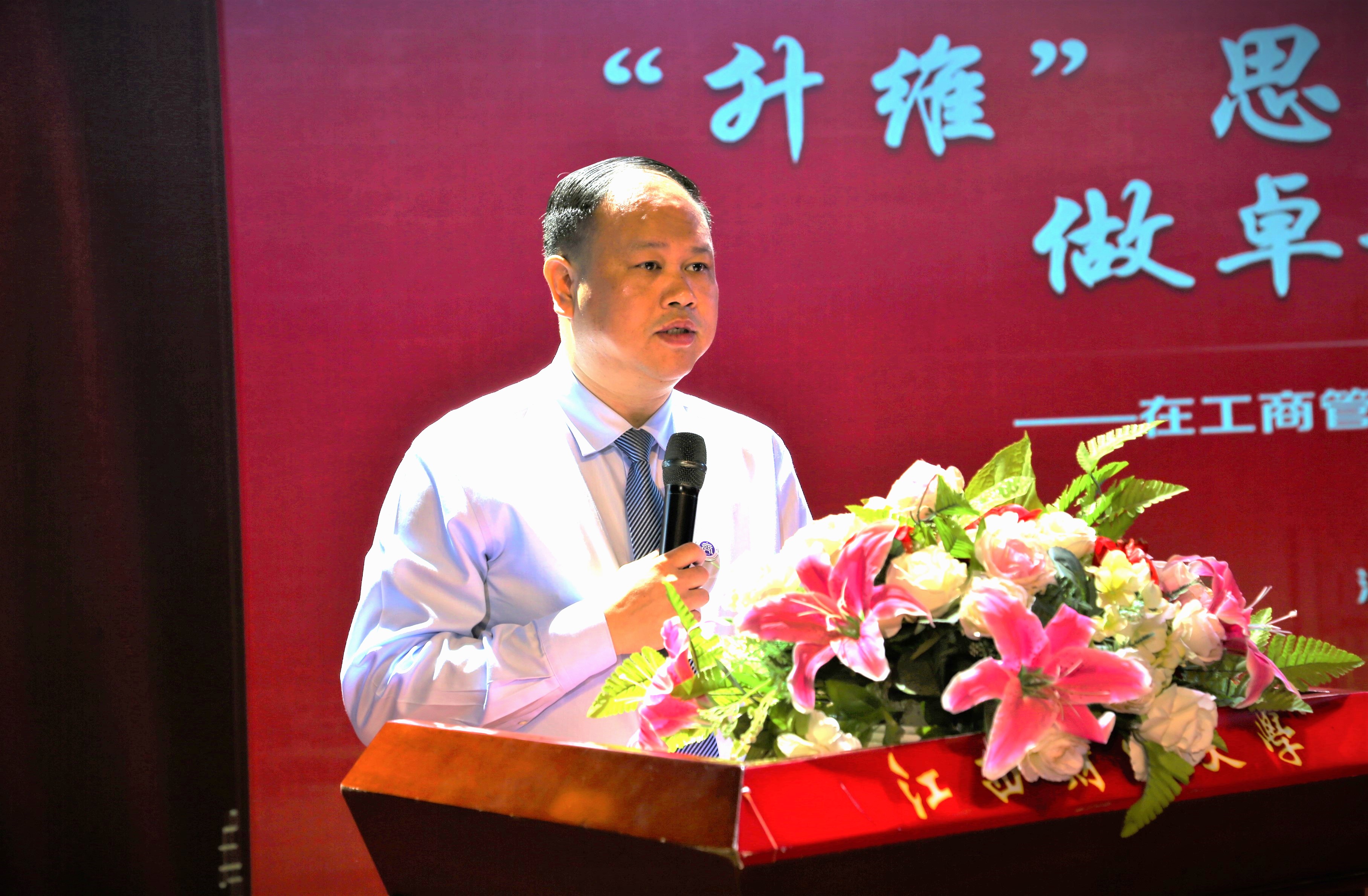学院院长胡海波以“‘升维’思考、‘精益’行动,做卓越的管理学人”为题在典礼上讲话。胡海波回顾了不平凡2023年,对各位新生在这个充满机遇与挑战的新时代加入江财工商表示欢迎。胡海波希望各位新生能够学会“升维”思考,通过“内向”“外向”两个方向找到“我”;能够践行“精益”行动,通过矢志奋进方向、奋力闯关夺隘,两条路径放大“我”;能够“超限跃迁”,以“无我”是“无畏”、“无我”是“无愧”的精神,忘记“我”,串联“升维”思考与“精益”行动,成为卓越的管理学人。(点击阅读讲话全文)