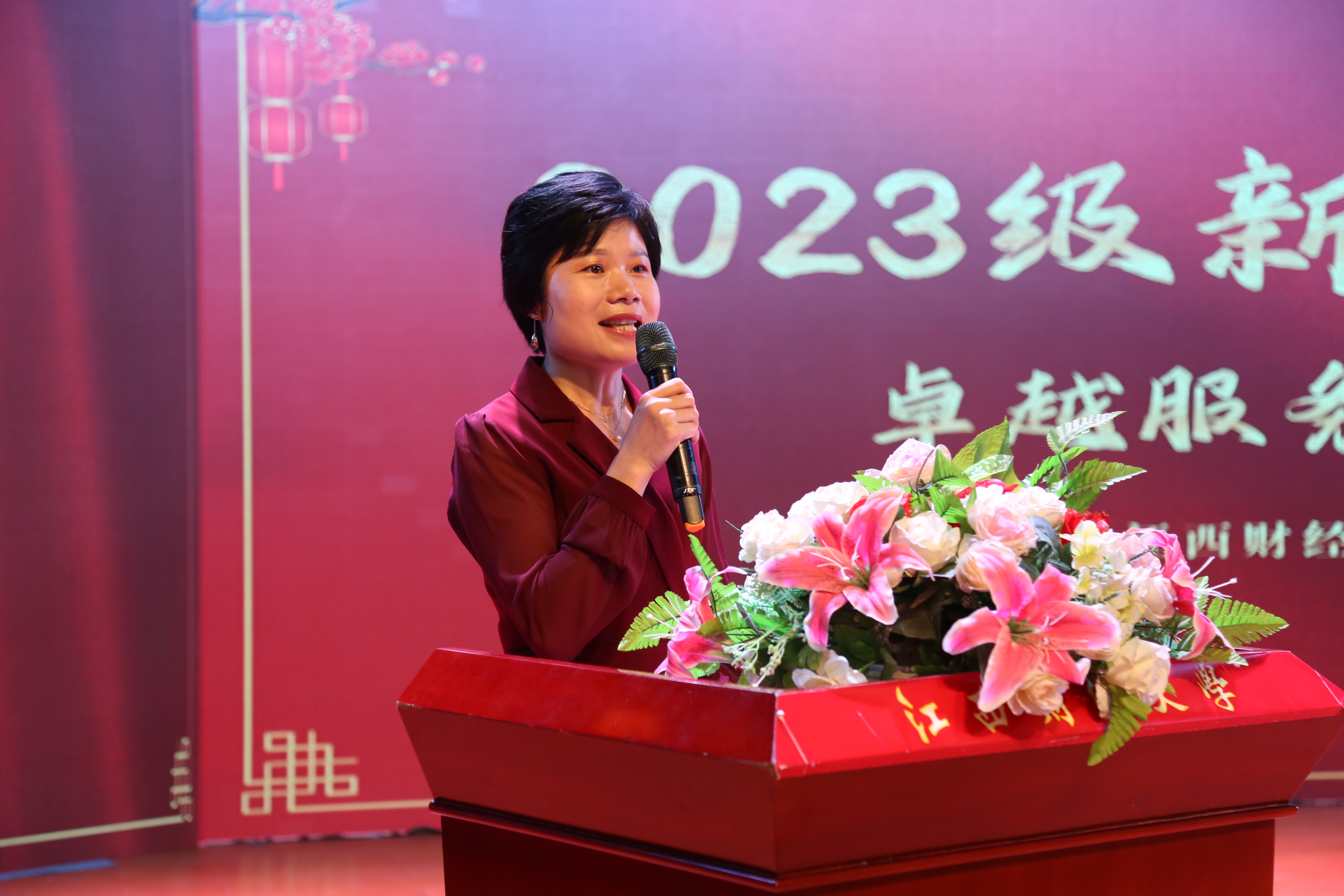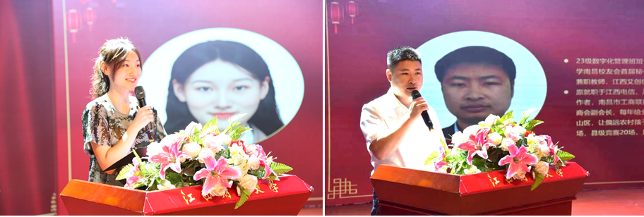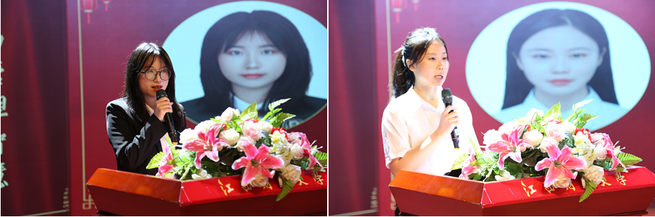 在校学生代表,2021级工商管理专业本科生叶婧闻、2023级博士研究生熊梅菲从不同角度回顾了自己在江财工商度过的美好时光,分享了与江财工商的浓浓情怀,并祝愿新生在这里成为更好的自己。