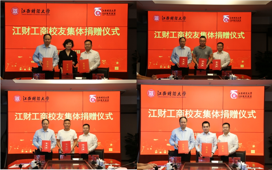 仪式进行过程中,校友联络服务中心主任夏贤锋、工商管理学院院长胡海波与各位校友共同签署了捐赠协议。