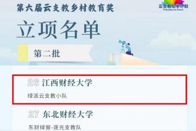 近日,中国大学生知行促进计划、有爱有未来企业志愿行动、青年影响力创新中心、校园行动派联合公布了第六届全国云支教乡村教育奖第二批立项名单,江西财经大学绿派社的绿派云支教小队成功入选。