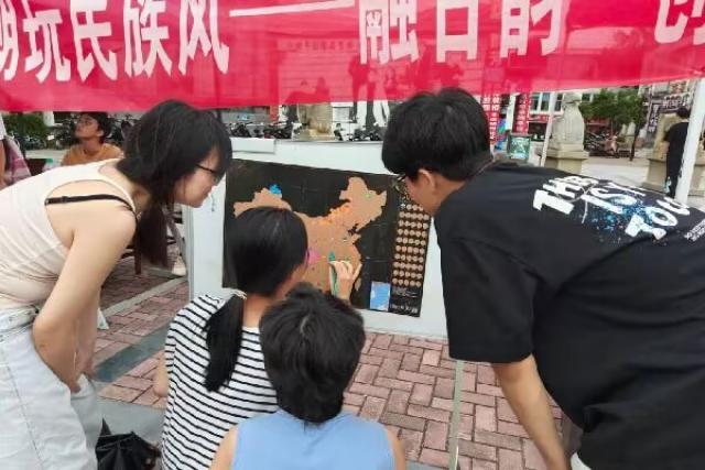 参与者可在“DIY书签”摊位,挑选书签,稍加装饰,写下有关民族团结的寄语;也可在“旅游中国”摊位,圈出家乡地点,分享家乡特色;亦可前往“服饰学习”和“语言学习”摊位,根据工作人员展示的民族服饰照片或播放的民族语言录音,猜出对应民族。