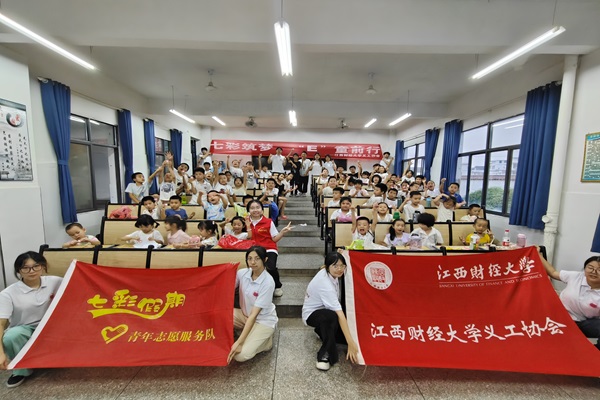 7月26日,江西财经大学义工协会“梦起传统,七彩同行”教研队于江西省赣州市蓉江新区潭口镇江坝小学开展暑期“三下乡”结营仪式。