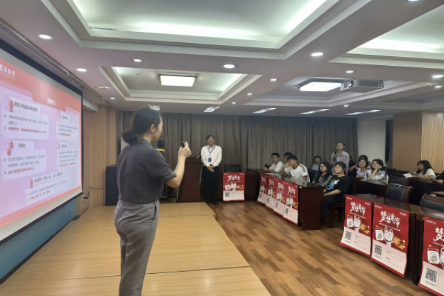 会议伊始,王飞妮致开场辞。随后,她以幽默风趣的语言介绍招商银行南昌分行的发展历程及取得的成就,帮助同学们更深入地了解招行。她强调“尊重、合作、创新”是招行的核心价值观,唯有同事之间互帮互助,才能营造和谐、高效的工作环境,形成良好的团队文化。