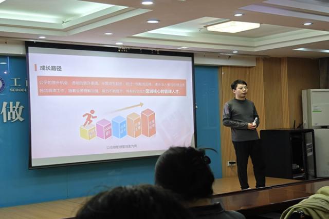 其次,主讲人分享自己在拼多多的成长经历,及他对企业文化的独特见解。主讲人亲身经历的分享使得其话语更具说服力,让学子们感受到拼多多集团的文化魅力。