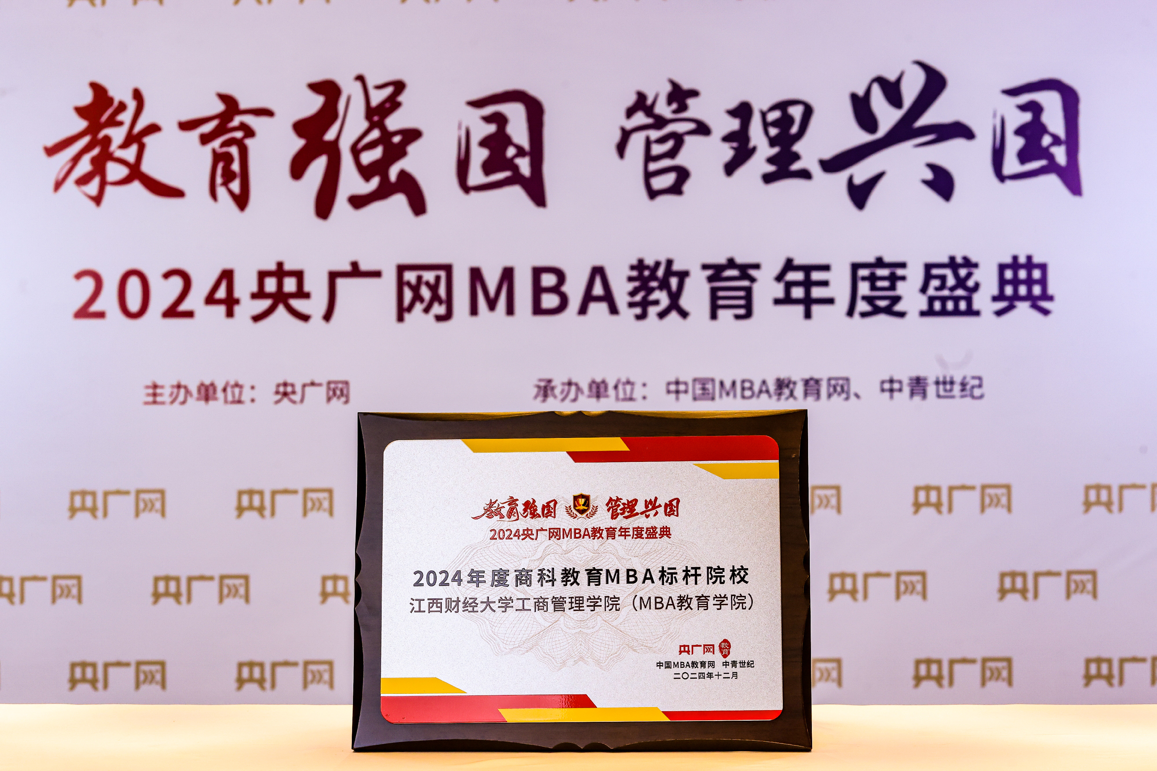 本次庆典上,2024年度商科教育致敬榜单发布,江西财经大学工商管理学院(MBA教育学院)荣获“2024年度商科教育MBA标杆院校”。