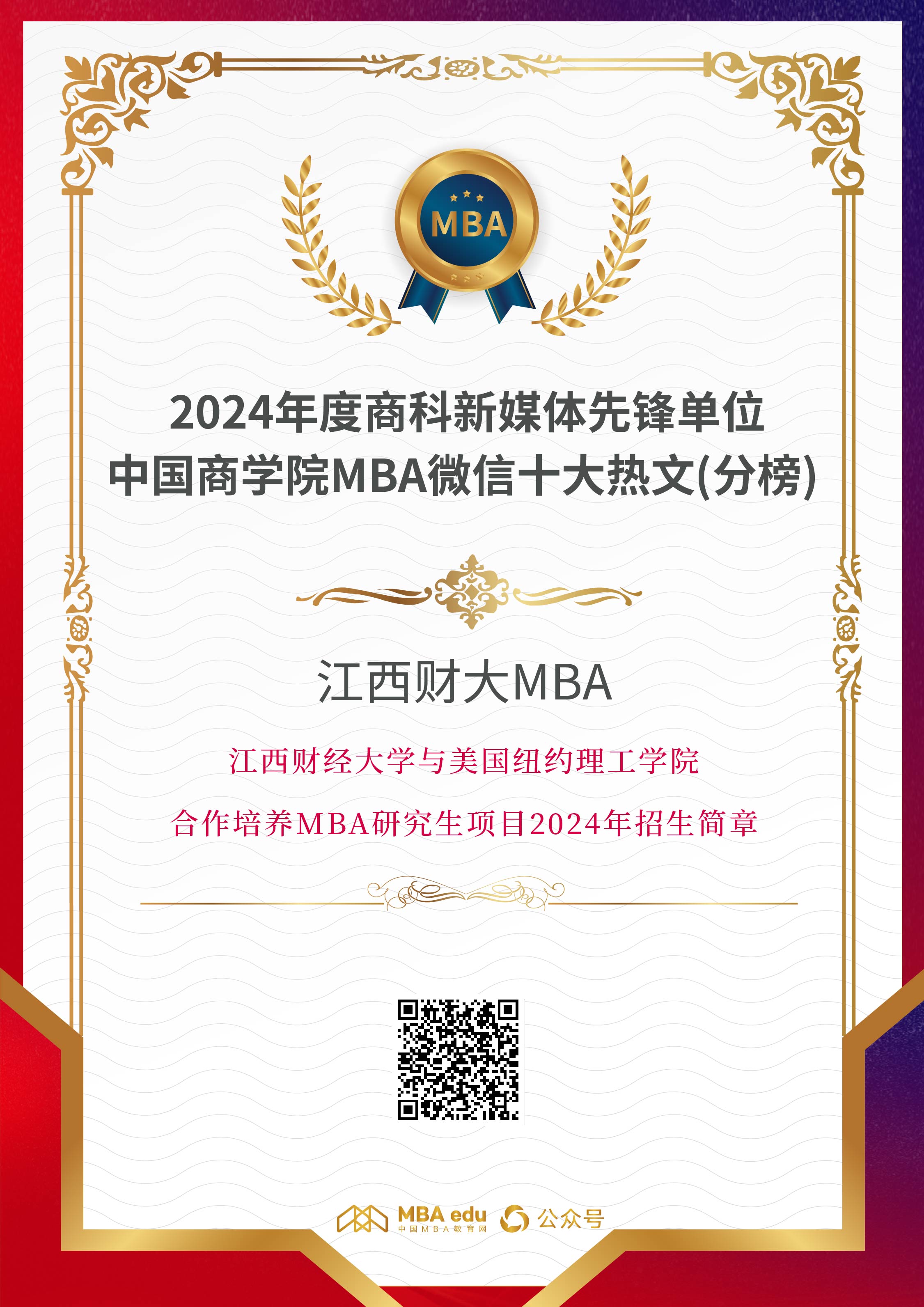 官方微信公众号作为连接学生、教师与校园的重要桥梁,扮演着举足轻重的角色。它不仅成为了MBA学子日常获取资讯、促进学习交流与互动的关键窗口,还深度契合了新媒体发展的时代脉搏,精准把握了校园文化传播在新形势下的新规律与新需求。此次入榜不仅是对过去一年中江财MBA微信公众号在品牌建设、内容创新、用户互动等方面所取得卓越成就的肯定,更是对未来商学院新媒体平台建设与发展方向的引领与启示。