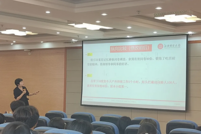 为进一步提升工商管理学院25届毕业班学生的求职技能,助力工商学子顺利找到心仪的就业岗位,工商管理学院于11月30日下午在江西财经大学麦庐园北区中至大楼910报告厅开展就业月课堂——团体辅导活动。工商管理学院党委副书记周海燕,学工办主任张天元,学生辅导员周珏应邀出席。25届毕业班学生全体参加。