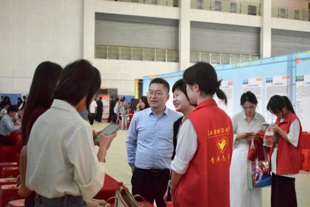 学院对此次招聘会高度重视,在招聘会期间,江西财经大学工商管理学院党委书记贺三宝、党委副书记周海燕、学工办主任张天元等学院领导和老师莅临招聘会现场。在招聘会现场,学院以热忱之心盛情迎接各企业代表前来参会,向招聘单位详细介绍学院的人才培养模式、专业特色与教学成果。同时,学院积极与企业交流探讨行业发展趋势及岗位需求动态,并就建立长期稳定的校企合作机制展开深入沟通。学院期望通过双方深度合作,促进人才培养与社会需求紧密结合、良性互动,最终实现学院与企业携手共进、互利共赢的良好局面。