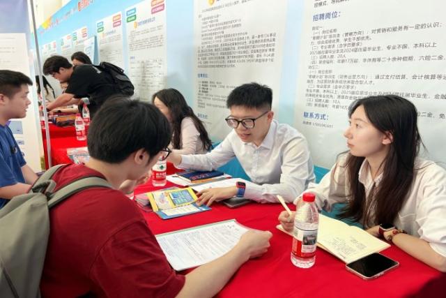 招聘会现场热潮涌动,企业展板有序陈列,前来面试的同学川流不息,在各个展位间排队等待面试。经过前期的职业生涯规划与就业指导课程,应届毕业生们已对求职流程有了初步了解,前来求职的学子们身着笔挺正装,手持精心打磨的简历,化身“职场探险家”,在各展位间踊跃交流。他们落落大方地向企业方进行自我介绍、陈述个人优势与岗位匹配度,认真聆听企业方对本公司业务的介绍并回答企业方的询问,展现出自己从容自信的一面。