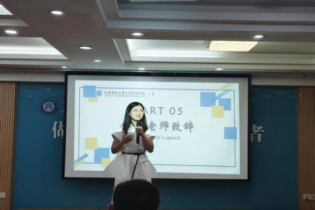 其次,营销达人社支书胡小娜上台发言,她指出虽然社团发展道路不易,但各位成员始终坚守初心,奋力前行,在社团实践中收获成长,并勉励各位在以后的生活中砥砺前行。