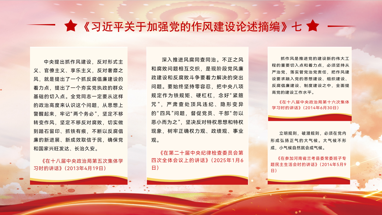 此外,由学生党员陈枫领学《习近平关于加强党的作风建设论述摘编》的第七、八部分,以及《八项规定改变中国》中关于以党风政风焕然一新引领社风民风深刻变革视频的内容。通过此次学习,全体党员深刻认识到正风肃纪与反腐贯通一体,是保持党的先进性的关键;党的作风纯洁关乎人心向背,是执政根基所在;党员需以身作则,以优良党风引领学风社风民风向好;全面从严治党需常抓不懈。