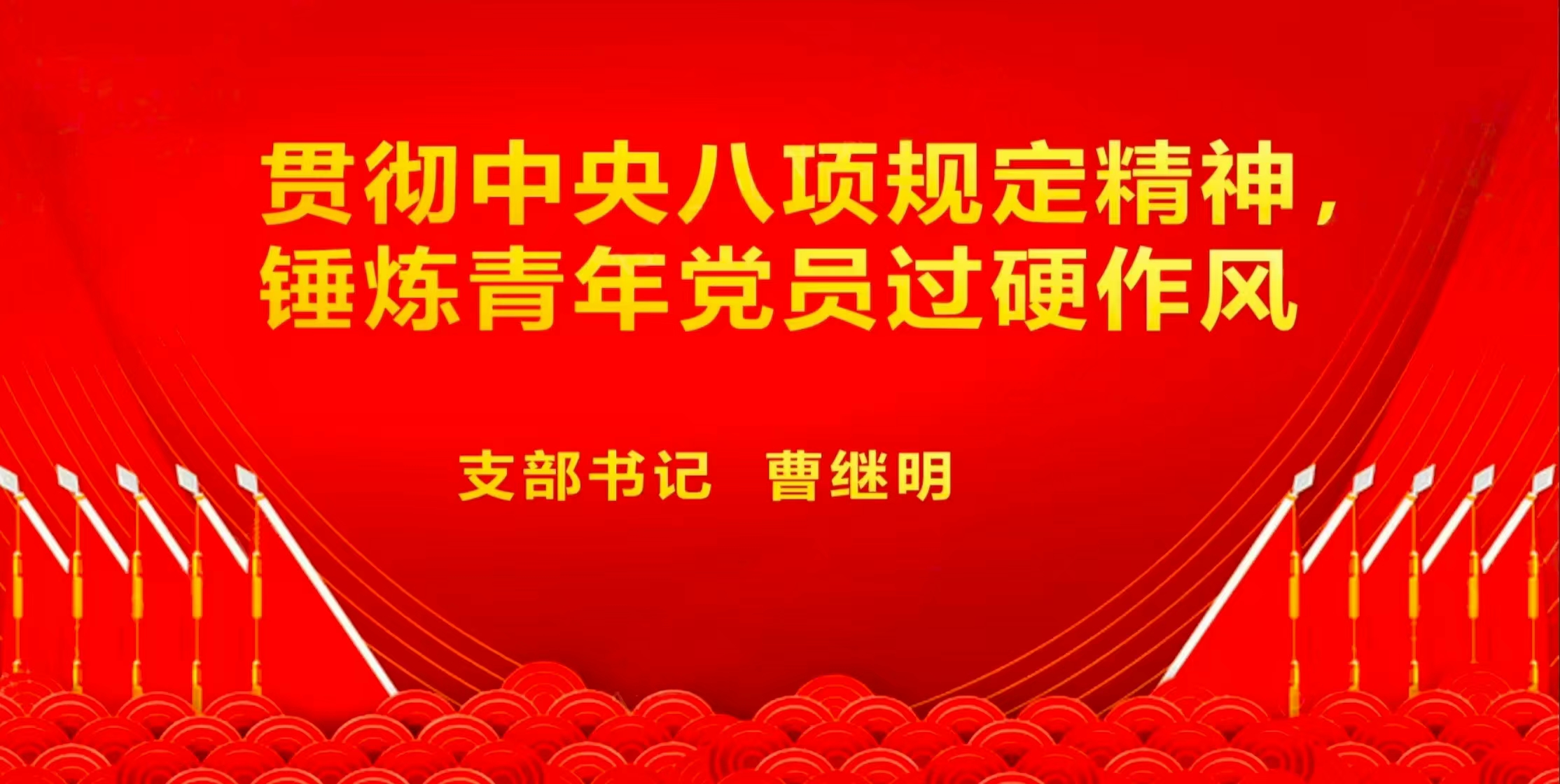 会议最后,支部书记曹继明以“贯彻中央八项规定精神,锤炼青年党员过硬作风”为题讲授学习教育专题党课,曹继明指出,青年党员要认识到开展深入贯彻中央八项规定精神学习教育是我们党推进全面从严治党的重要战略部署也是保持党的先进性、纯洁性的必然要求。他强调,青年党员要强化理论学习,增强理论自信;要善于剖析典型案例,防微杜渐;要勇于进行自我查摆,提高自我革新能力。