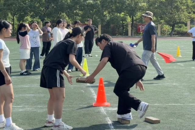 脚下的砖块,不是一种阻碍,而是你们通往胜利的阶梯。曲膝、递砖、落脚,每一个动作干脆利落,每一次衔接稳中求进,每一次交接默契配合。你们目光如炬,紧盯前方的终点,不仅是在传递这四四方方的砖块,更是在传递自信和力量。