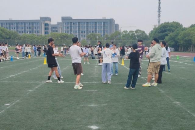 同心鼓的绳索在运动员们的手中绷紧,彩色的排球随着周围同学的加油声在鼓面跳跃。十双手的默契同频,让鼓面和排球每一次都能精准碰撞,393声清脆的鼓声是他们团队协作的勋章。汗水浸湿绳索,却握的更紧;阳光刺目,却不改专注的眼神。这面鼓,敲出的不仅是节奏,更是“其利断金”坚定团结的信念。
