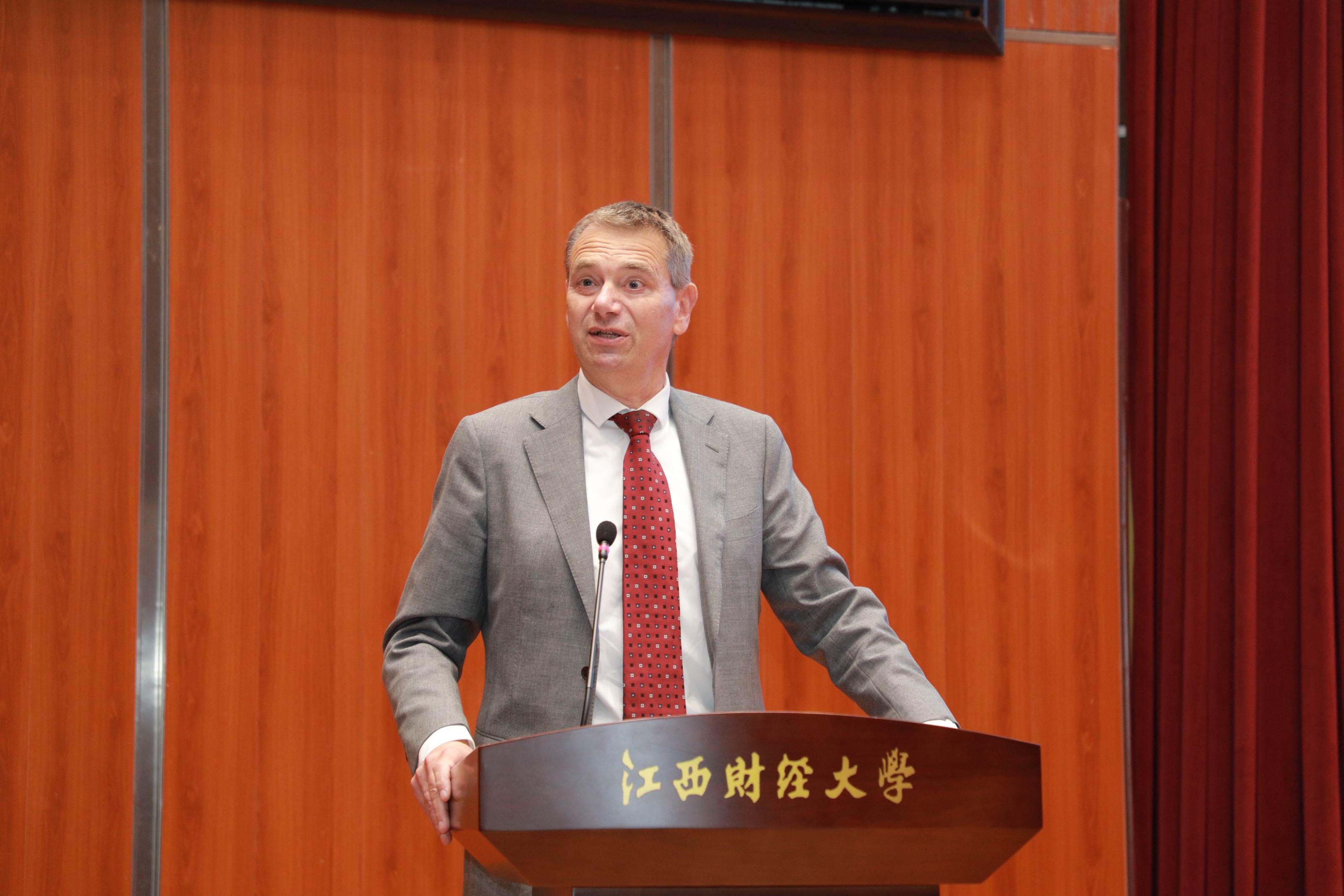 Professor Deng Hui, President of Jiangxi University of Finance and Economics, Fu Bo, Deputy Secretary General of China Education International Exchange Association, Professor Hans VAN OUDHEUSDEN, President of NIBS, Professor Fang Yuming, Member of the Party Committee and Vice President of Jiangxi University of Finance and Economics, Wu Zuowen, Director of the International Cooperation and Exchange Department of Jiangxi Provincial Department of Education, Rao Ye, Director of the Meida Europe Department of Jiangxi Provincial Foreign Affairs Office, Professor Yoo Tek · LEE, Executive Dean and Future Dean of Endicott International school and Future school of Yousong University in South Korea, Britta STOELINGA, Vice President of Rotterdam Case School, Gong Meijun, Director of the International Cooperation and Exchange Department of Jiangxi University of Finance and Economics, Professor Xiao Long, Dean of the Preparatory school for Studying Abroad, Professor Hu Haibo, Dean of the School of Business Administration and Party Secretary He Sanbao, Southeast Missouri State University Professor Willie Redmond, Brand Director and Deputy General Manager of Sales at Lidu Liquor Industry, Hu Xue, and others attended the opening ceremony.