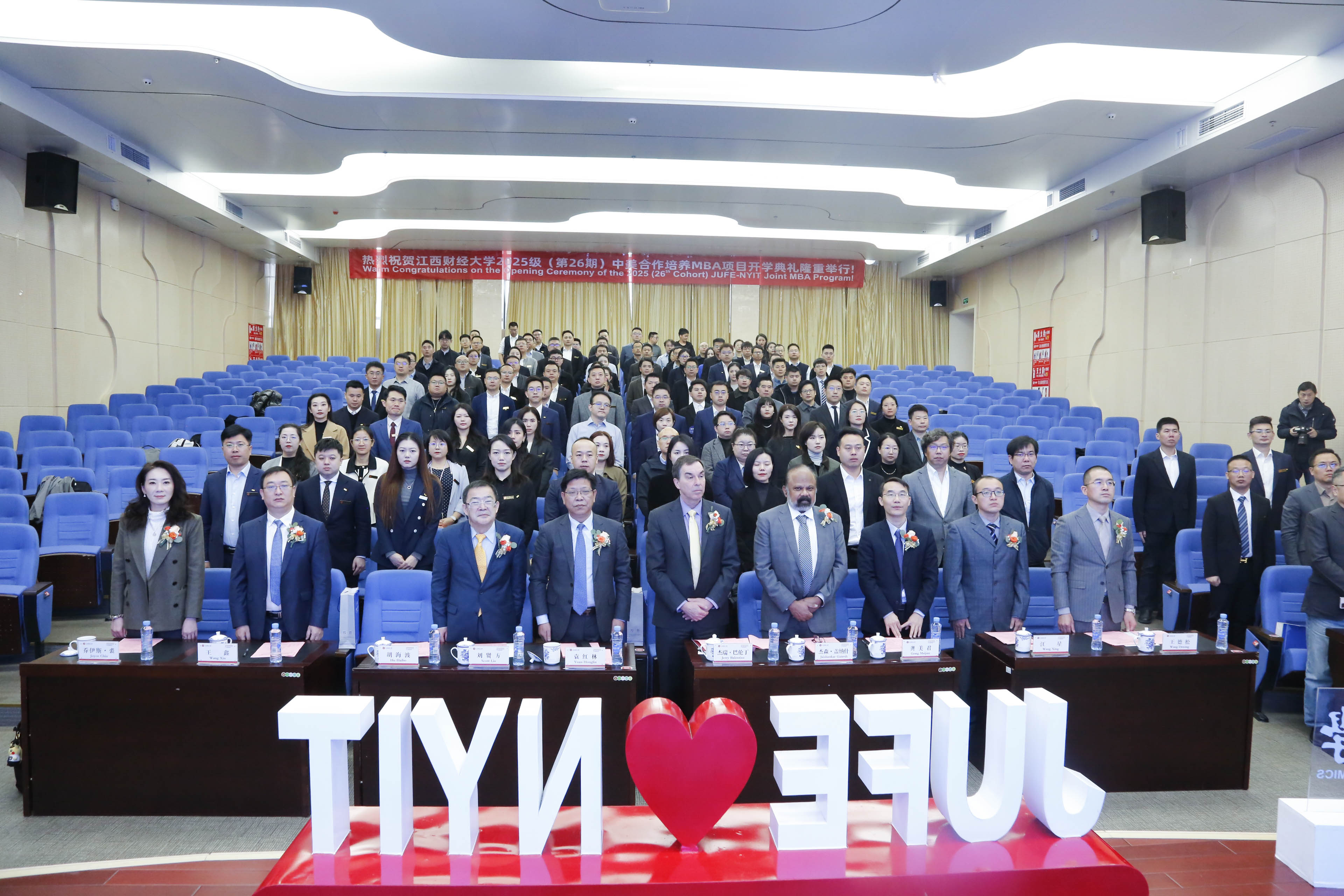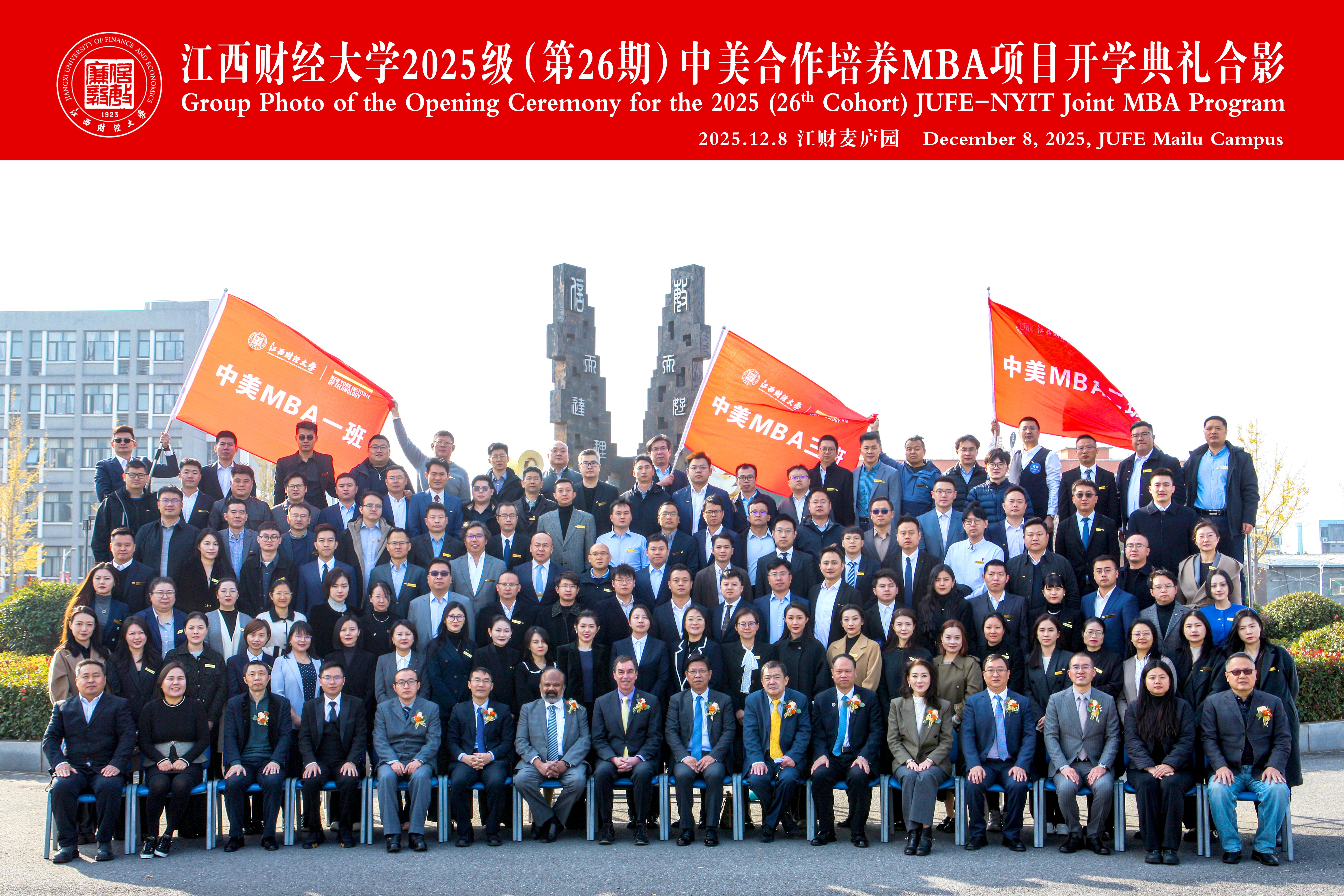 12月8日上午,工商管理学院在麦庐园第三教学楼学术报告厅顺利举行2025级(第26期)中美合作培养MBA项目开学典礼。美国纽约理工学院校长杰瑞•巴伦丁教授、江西财经大学党委常委、副校长袁红林教授、美国纽约理工学院管理学院院长杰森•盖纳什教授、管理学院执行副院长刘贤方教授、国际商业研究中心主任乔伊斯•裘女士,江西财经大学国际合作与交流处处长龚美君博士、研究生院副院长汪星教授、工商管理学院副院长王鑫博士,中美MBA项目校友代表、大成教育集团创始人王德松博士等出席。2025级(第26期)中美MBA项目管理团队、新生班班主任、教师代表及新生等150余人参加典礼。典礼由工商管理学院院长胡海波教授主持。
