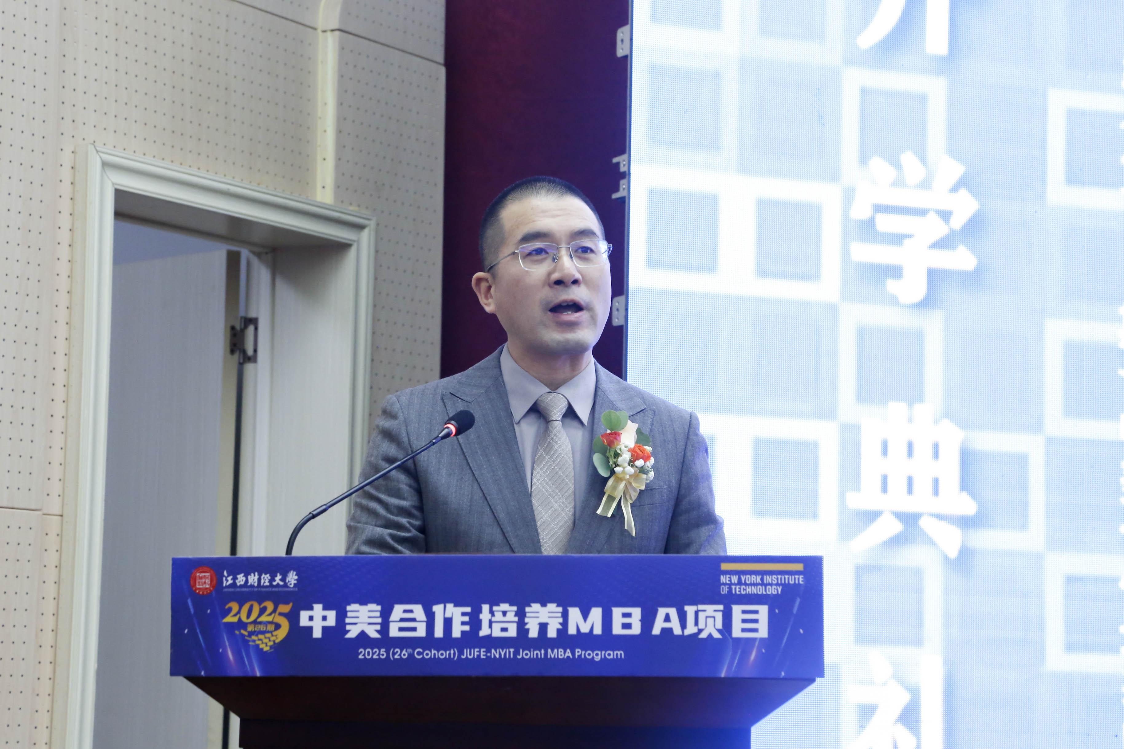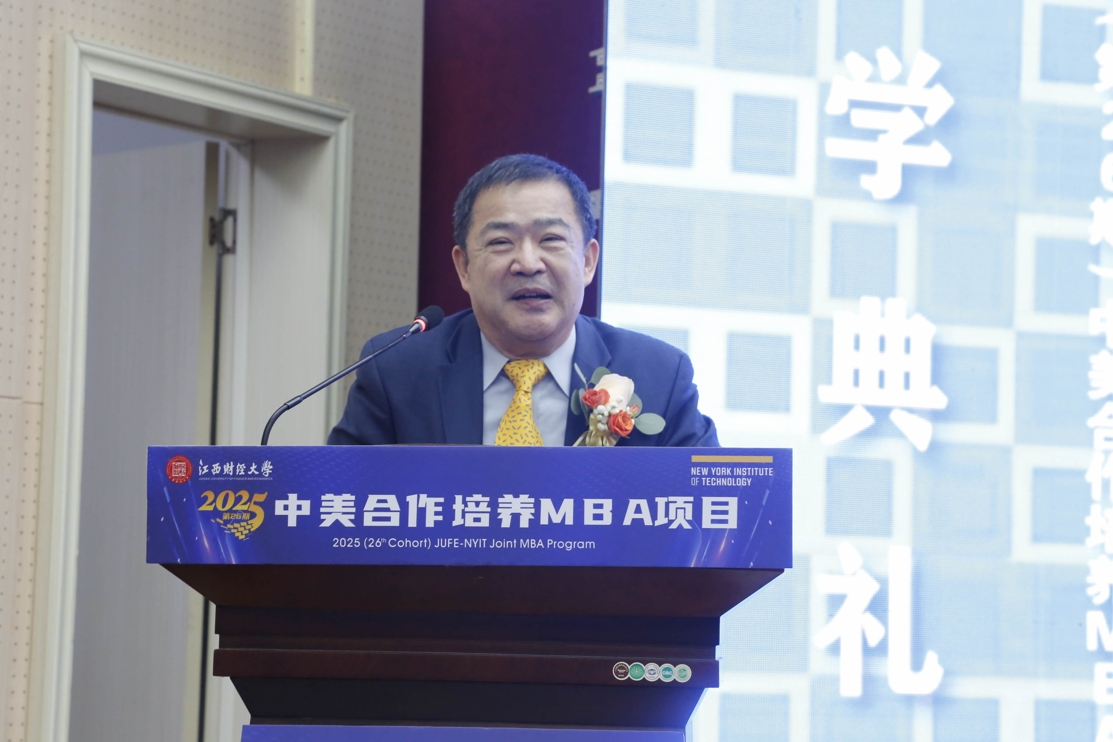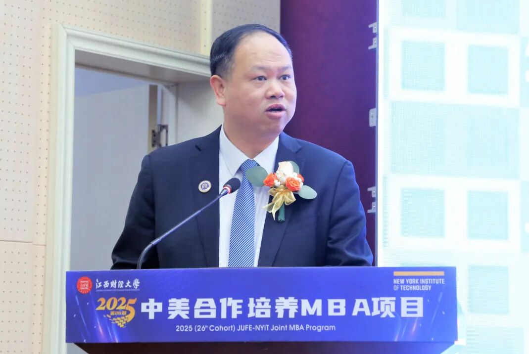 杰瑞·巴伦丁在致辞中回顾了美国纽约理工学院和江西财经大学合作举办MBA项目27年的发展历史,并对江西财经大学的持续支持以及相关领导老师的辛勤付出表示感谢。杰瑞·巴伦丁校长表示中美两校双方秉持共同目标、追求卓越的合作理念,让这段关系不仅是简单的合作,更是深厚稳固的战略伙伴关系——它惠及每一位学生、两所高校,也为我们中美两个伟大的国家搭建了友谊与交流的桥梁。基于美国纽约理工学院的使命与愿景,他鼓励2025级新生把握好每一个机会,积极投身社会,心怀人文关怀精神,与同窗好友建立人脉、切磋学习、携手合作——这里的同窗不仅包括中国同胞,还有来自美国及全球其他国家地区的学子。