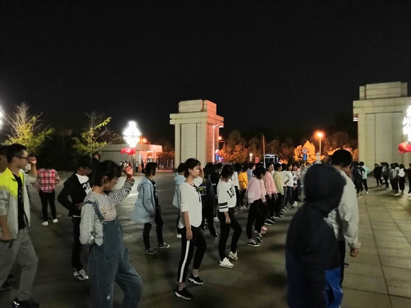 夜色将至,同学们聚集在北区广场开始进行啦啦操项目的训练。首先,在领操同学的带领下,同学们开始了热身运动。随后,训练正式开始了。领操同学耐心地将动作分解开,一步一步地教给同学们。据悉,啦啦操训练要求每位队员的每个动作必须到位,队伍动作整齐划一。动作的协调与整齐问题始终困扰着啦啦操队伍,却没能打击到同学们。长时间的排练,同学们却没有倦怠,个个精神饱满,状态良好。无数遍重复,没有打击同学们的信心。汗流浃背,也没有让同学们放弃。不断训练,看到一点一点的进步,让每一位同学都欣喜不已。“好难,但是很喜欢这样大家一起努力,一起进步的感觉,很有成就感。”一位训练的同学如是说道。