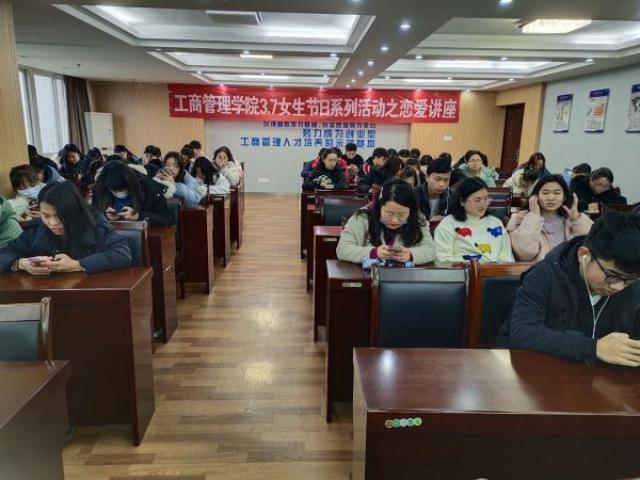 工商管理学院党委副书记周海燕通过讲述网络上在恋爱中女生被PUA的实例,以此告诉在场女生在恋爱中要自尊自爱,在意识到一段恋情带给自己的痛苦大于欢乐时应当及时止损。她希望每位女生都能具备辨别是非的能力,树立正确观念,收获一段白首不相离的爱情。