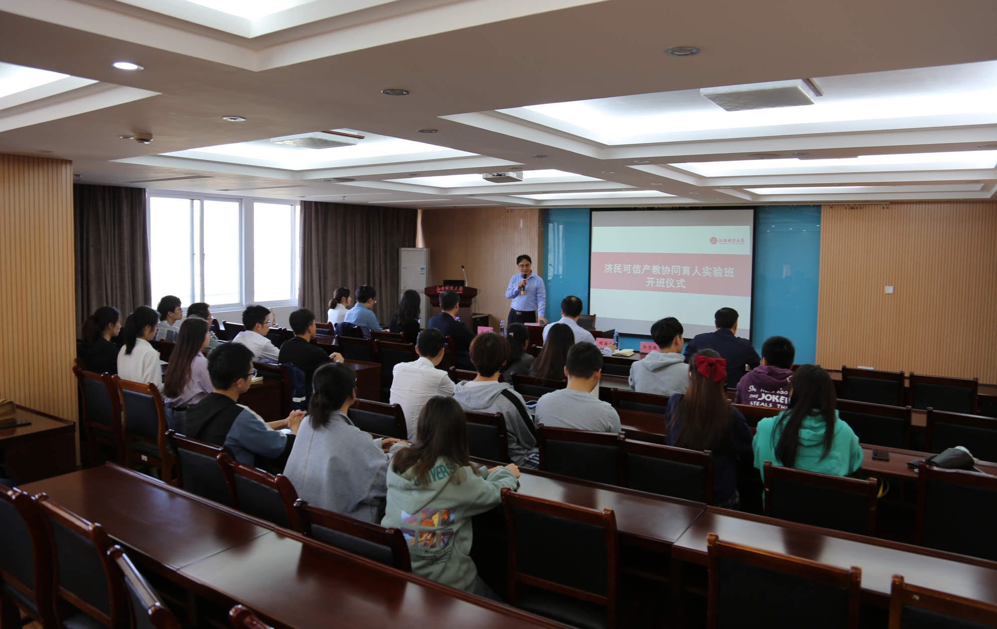 11月18日下午,由工商管理学院和济民可信药业集团联合举办的“济民可信产教协同育人实验班”开班仪式在麦庐校区英孚楼516会议室举行。济民可信医药产业集团人力资源部总监艾力,工商管理学院院长胡海波,企业方班主任王宇飞,院方班主任周林出席开班仪式。工商管理学院副院长陆淳鸿主持开班仪式。