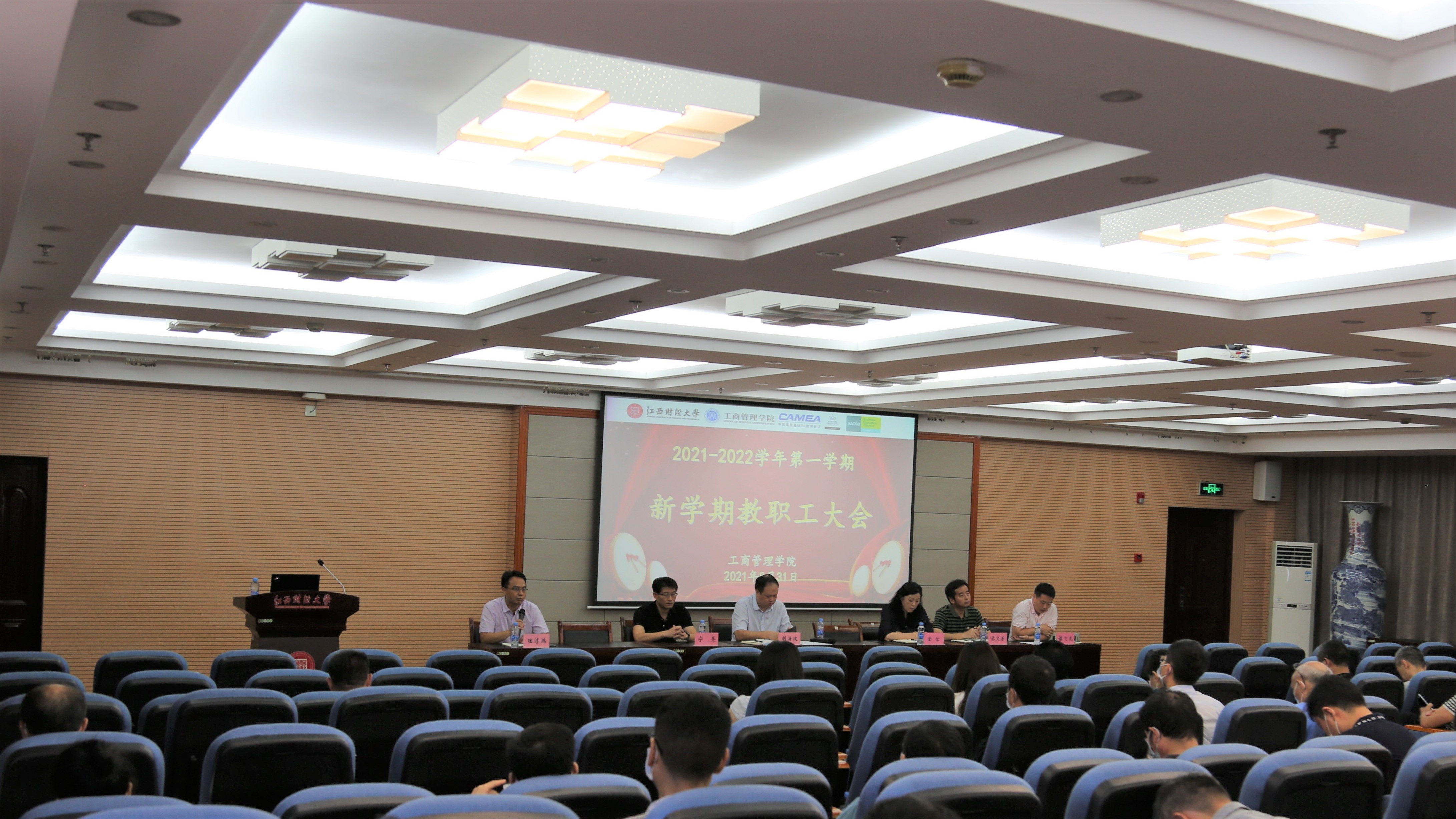 8月31日上午,工商管理学院在麦庐校区英孚大楼910会议室召开2021-2022学年第一学期全院教职工大会。院领导胡海波、宁亮、金欣、蔡文著、陆淳鸿、谌飞龙出席大会,全院全体教职工参加大会。