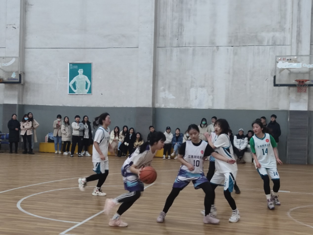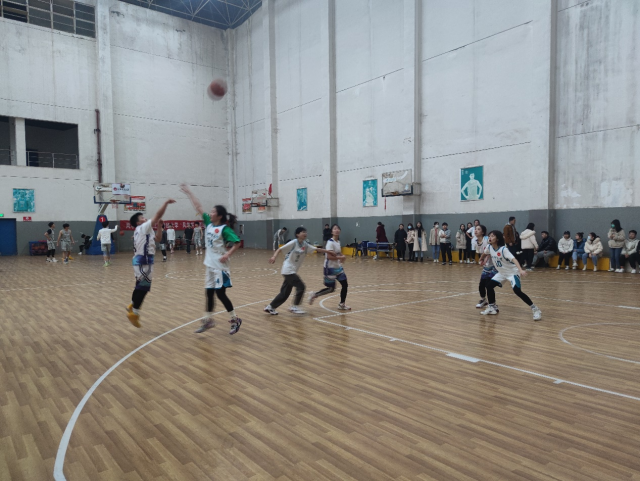 伴随长哨响起,现场的气氛急剧攀升,双方很快便进入了状态。比赛一开始,黄睿和李雅薇便通过默契的配合夺得2分。第一节结束比分稍有落后,但是工商女篮没有气馁。第二节一开始,姜小迁凭借娴熟的过人技巧连过两人并在重重防守之下命中一球并加罚一球,紧接着姜小迁罚篮时自投自抢进而又命中一球,此球过后工商女篮士气大增,李雅薇凭借极强的个人能力连进两球,黄睿积极抢板、上篮为队伍夺得关键2分。上半场工商女篮利用一次次漂亮的配合和上篮追上了比分并以14:5的比分获得领先。下半场一开始工商女篮依旧士气高昂,姜小迁两球频中拉大比分,随后姜小迁又以一记三分球将现场气氛推向高潮,现场的欢呼声此起彼伏,第三节结束工商女篮以26:11的比分获得压倒性优势。比赛愈发激烈,统计学院不断发起进攻,工商学院也不遑多让积极防守、配合,双方球员上演着球技和体能的较量。工商管理学院凭借默契的配合和出色的球技,牢牢掌控球场的节奏。而统计学院在比分落后的情况下仍然不放弃、敢拼搏的精神也感染了在场的每一位观众。两只球队都表现不俗,为在场的观众提供了一场视觉盛宴。