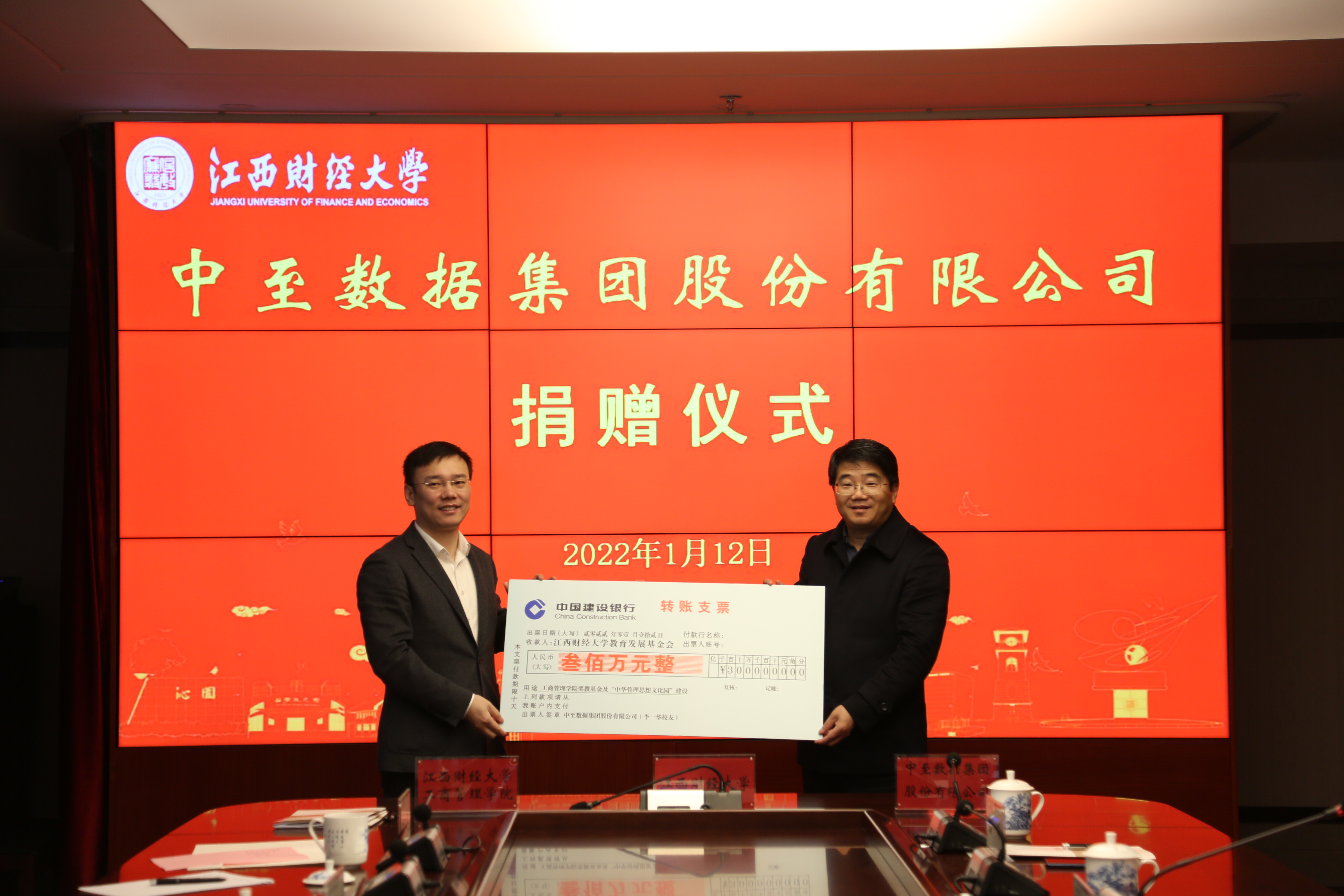 此次捐赠,中至集团捐资300万元,在工商管理学院设立“百年江财中至奖教基金”并捐建“中华管理思想文化园”。