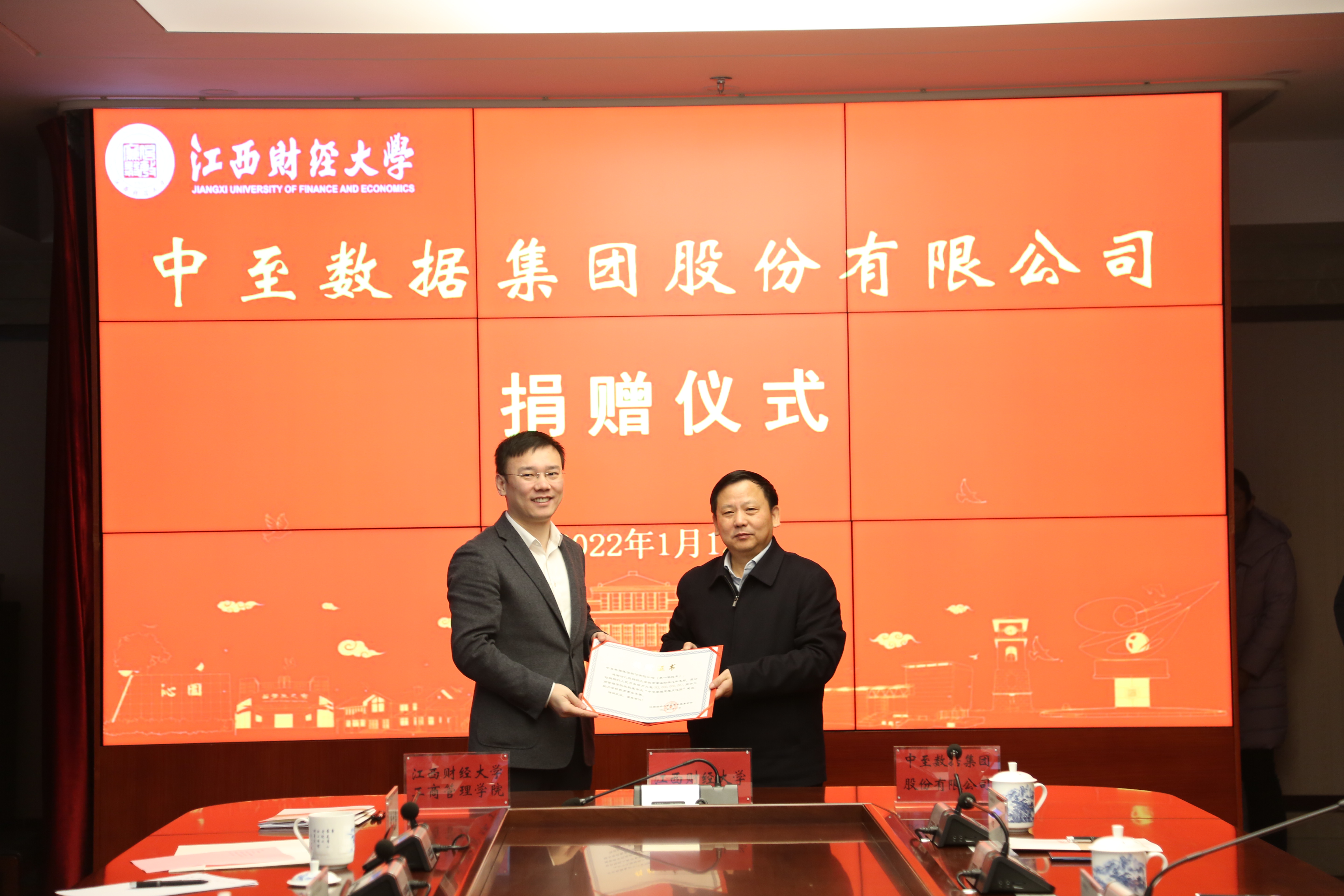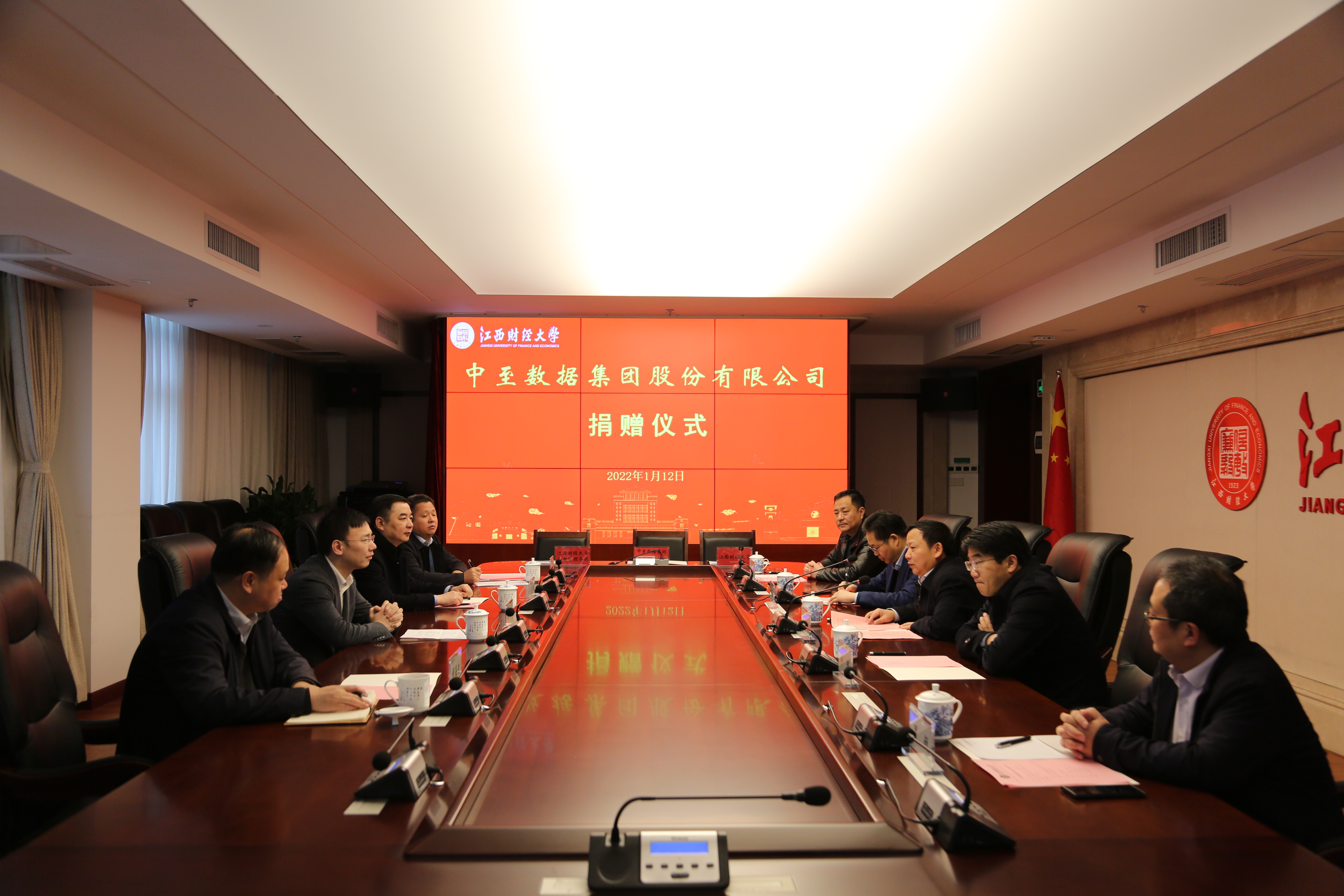 1月12日上午,中至数据集团股份有限公司捐赠签约仪式在蛟桥校区图文信息大楼12楼第1会议室举行。校党委书记卢福财,校长邓辉,副校长袁雄,中至集团党委书记、董事长、MBA校友李一华等出席签约仪式。副校长袁雄主持仪式。