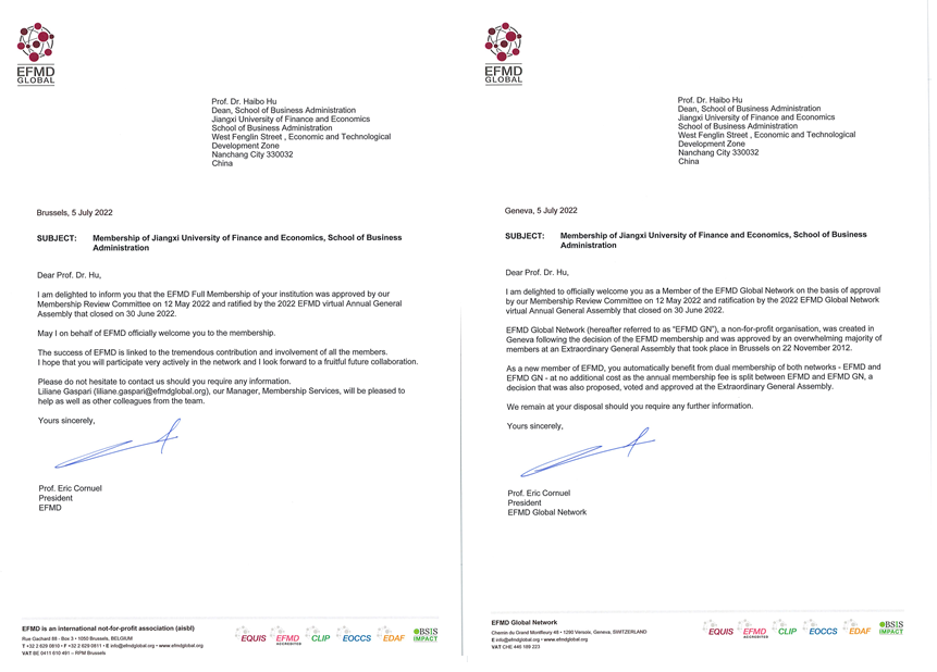 近日,工商管理学院收到欧洲管理发展基金会(European Foundation for Management Development,简称EFMD)通知,EFMD会员审查委员会审批通过学院会员资格,可作为正式会员享受其会员服务。EFMD官网信息显示,中国大陆地区共有49家高校商学院是其正式会员。