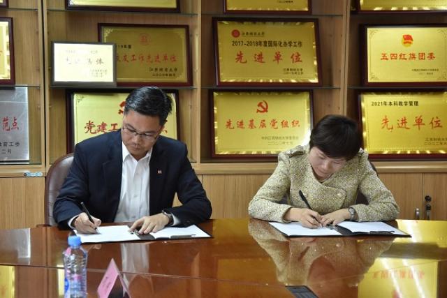 随后,周海燕代表工商管理学院与南昌中海地产有限公司签约校企合作协议,双方将在推进校企合作、建设实践基地、开展校内招生、举办招生讲座等方面开展深度合作,进一步推动双方事业发展。