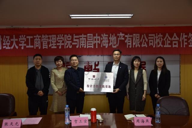 10月27日下午,工商管理学院于中至大楼403会议室与南昌中海地产有限公司签署校企合作协议并举行授牌仪式。工商管理学院党委书记贺三宝、党委副书记周海燕、学工办主任张天元、中海企业集团南昌公司总经理杨栋、人力资源总监刘帆、人力资源经理李佳萍出席仪式。本次签约授牌仪式由周海燕主持。