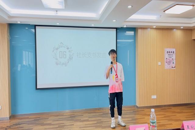 节目表演环节后,社团负责人李超上台为各部长进行授勋并讲话,对各位为社团建设作出努力的众人表达感谢,对近年来社团的发展抒发感悟。骨干魏运青回顾自己三年来在社团的经历与收获,希望新成员们也能积极融入社团,找寻到自己的价值。
