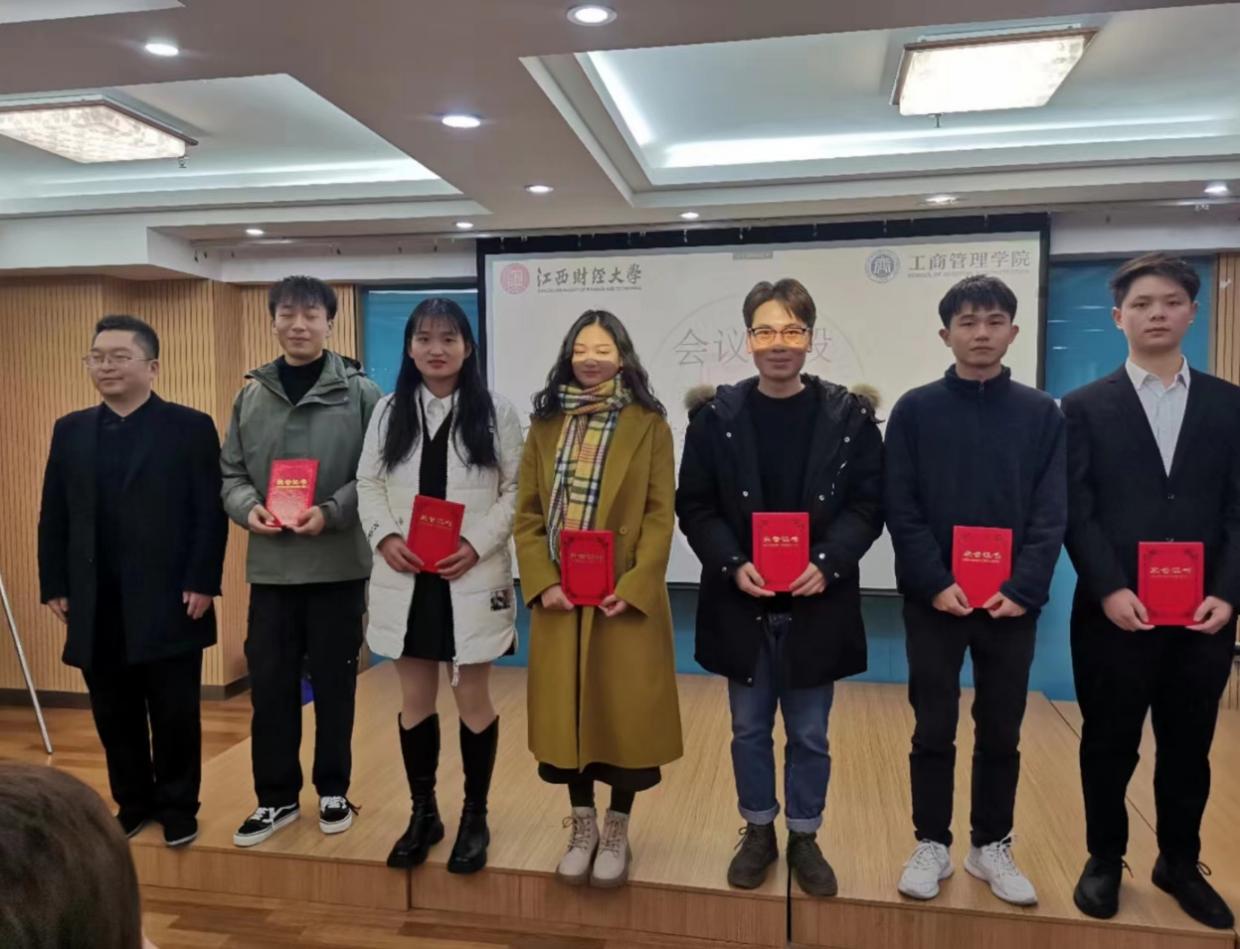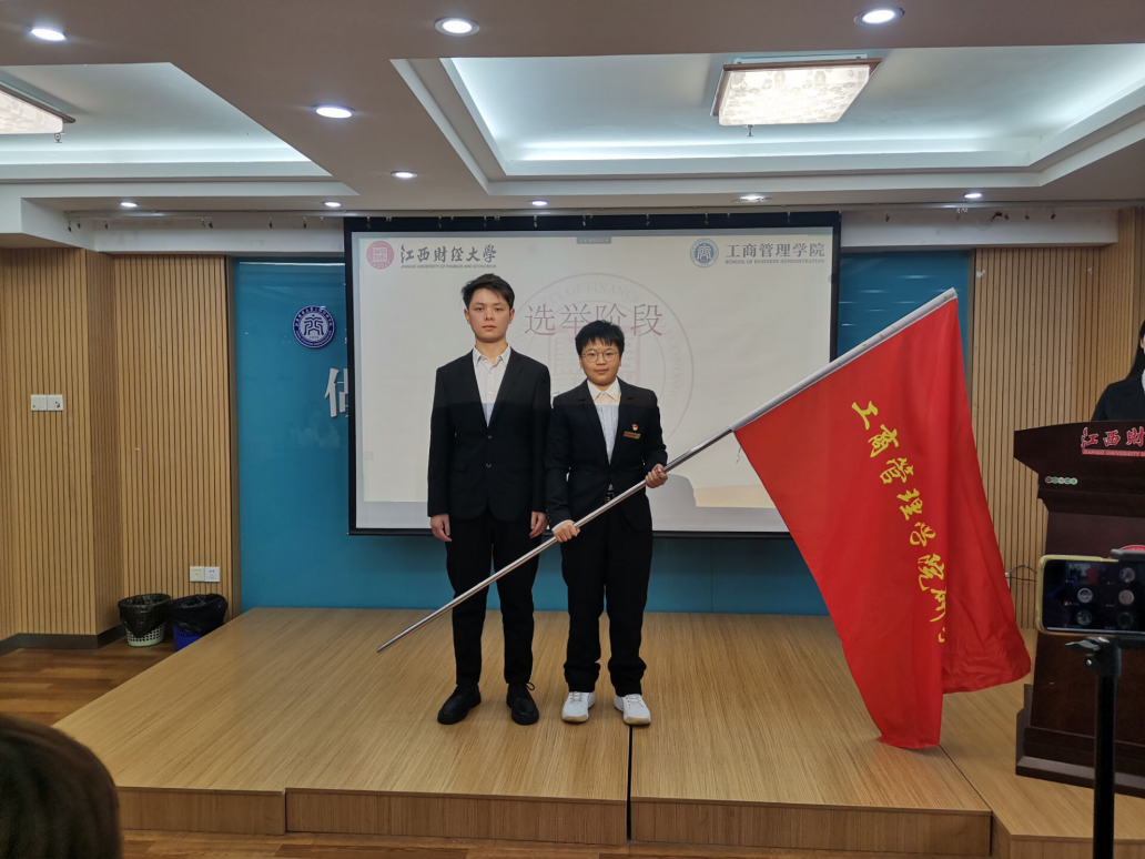 大会同时进行了研究生分会授旗仪式。新一届学术部部长万怀泽带领全体参会学生宣读了《工商管理学院研究生学术道德与学术素养倡议书》。