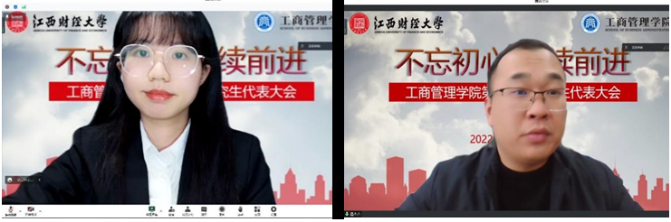 黄倩、潘志方分别代表江西财经大学研究生会和MBA联合会向大会召开表示祝贺。