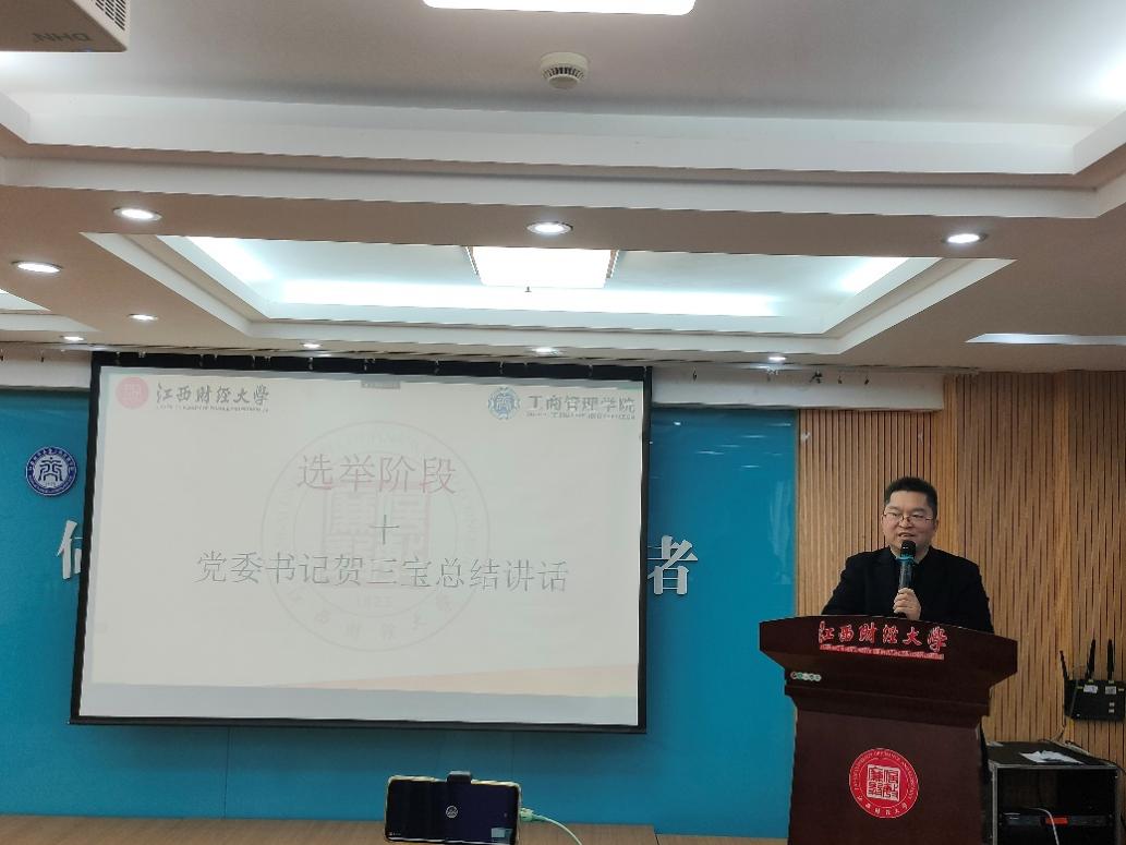 12月3日下午,工商管理学院第十一次研究生代表大会在中至大楼416会议室召开。学院党委书记贺三宝、党委副书记周海燕,副院长蔡文著,研究生辅导员张艳青出席会议。参加会议的还有江西财经大学校研究生会主席团成员黄倩、MBA联合会主席潘志方、工商管理学院本科生学生会主席王明辉、各兄弟院校研究生分会代表以及工商管理学院在读硕博研究生代表。