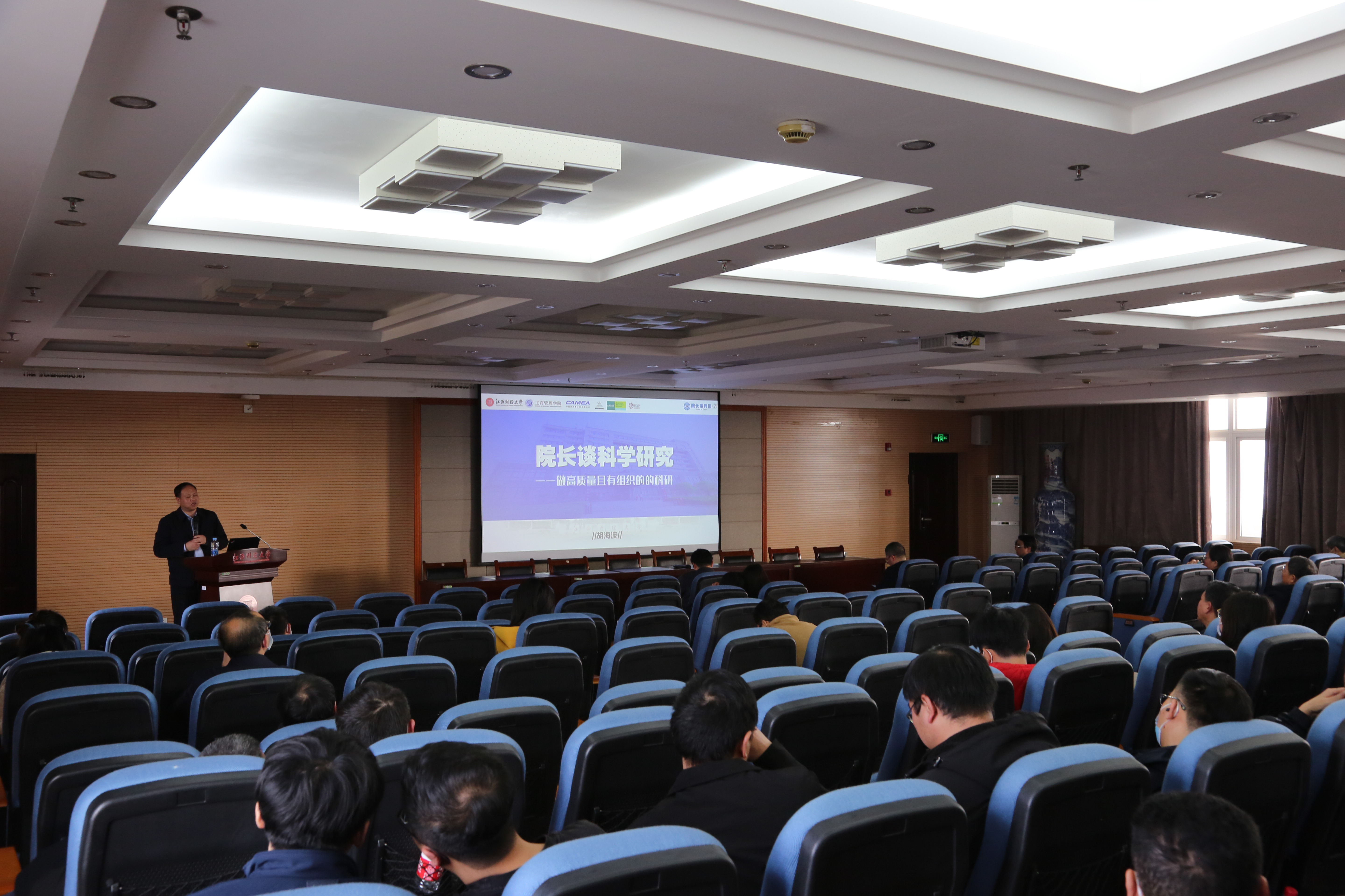 3月1日下午,工商管理学院在麦庐校区中至大楼910会议室召开全院教职工大会暨院长系列讲座第七讲。学院院长胡海波作题为“如何做高质量且有组织的科研”专题讲座。院领导贺三宝、金欣、周海燕、蔡文著、陆淳鸿、谌飞龙出席活动,学院全体教职工到场听讲。