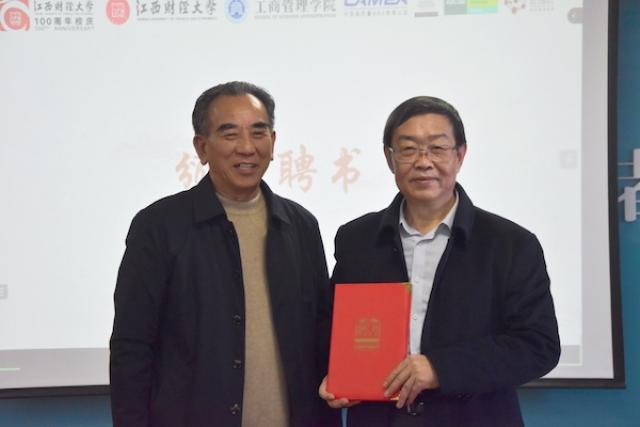 陈始发在致辞中指出,文化自信是最基础、最深厚、最广泛的自信,江西财经大学工商管理学院在中国管理思想研究方面走在全国前列,一直致力于用中华优秀传统文化构建中国特色管理理论,希望本次学术活动能够引导师生从汉字视角感知文化自信,获得精神力量。随后,吴照云为孔刃非颁发聘书,诚聘孔教授为中国管理思想研究院客座研究员。