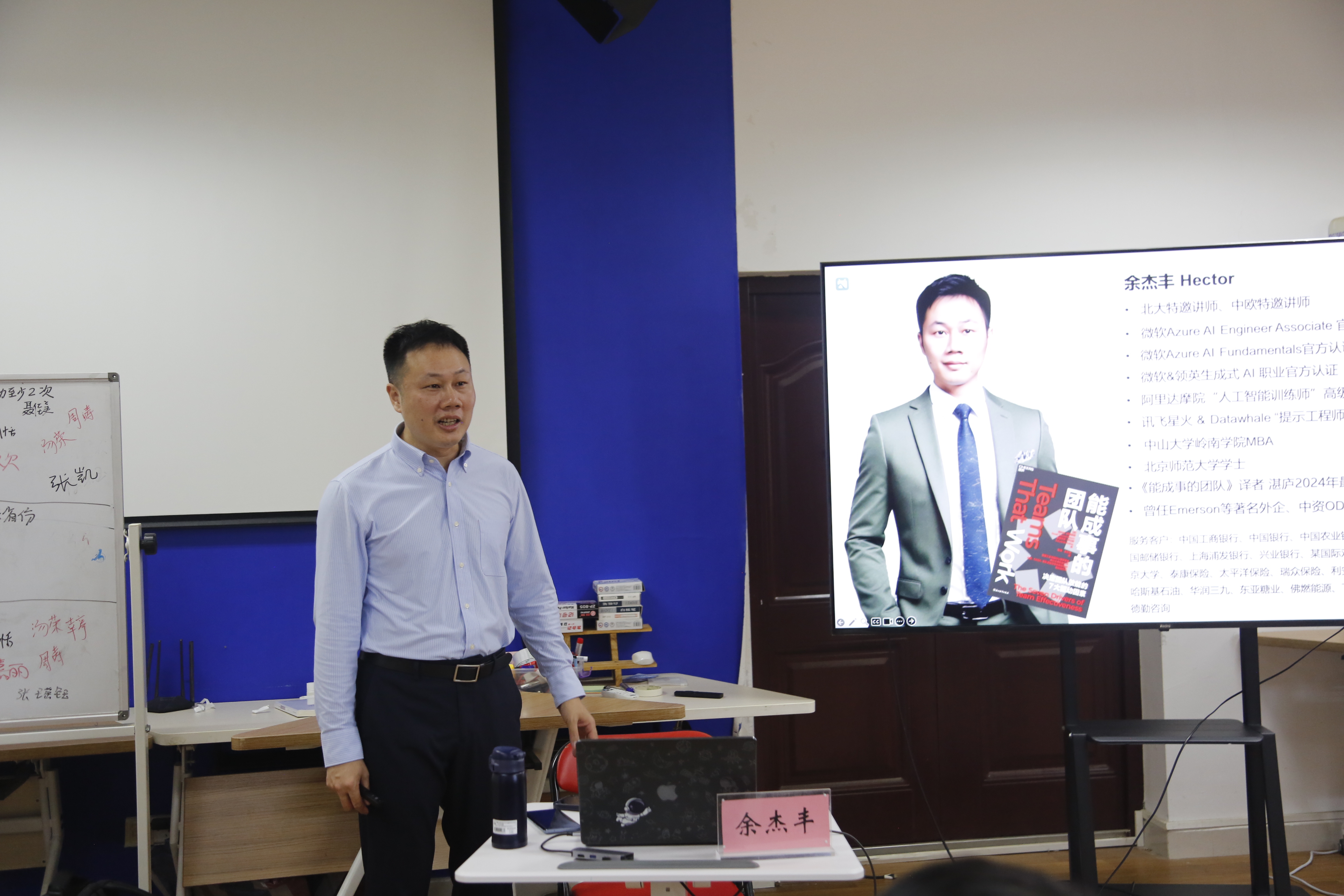 鲍松的讲座主要聚焦AI 在企业运营中的多元应用,分享了AI 技术在企业实际场景中的落地经验与成功案例,帮助参与者理解AI如何驱动企业效率提升与创新发展,把握企业数智化转型的核心路径。学员们还通过分组讨论和实操演练,深入了解了生成式AI在教学中的多样化应用场景。