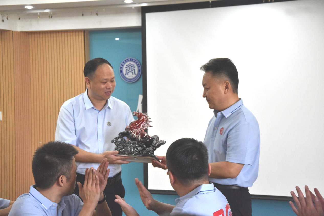 王金海为各位同窗定制陶瓷杯,象征“一辈子的情谊”,并代表91级校友向学院赠送骏马雕塑,寓意“马到成功”;胡海波向每位校友赠送当年的入学学籍表,留存青春印记。