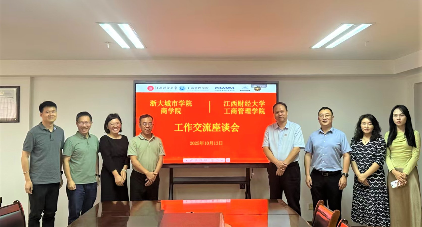 10月13日下午,浙大城市学院商学院执行院长陈勇、党委副书记丁秀娇、副院长楼建伟等一行来我院调研交流。工商管理学院院长胡海波、副院长王鑫及相关部门负责人接待了陈勇一行。双方在中至大楼503会议室进行了座谈交流。