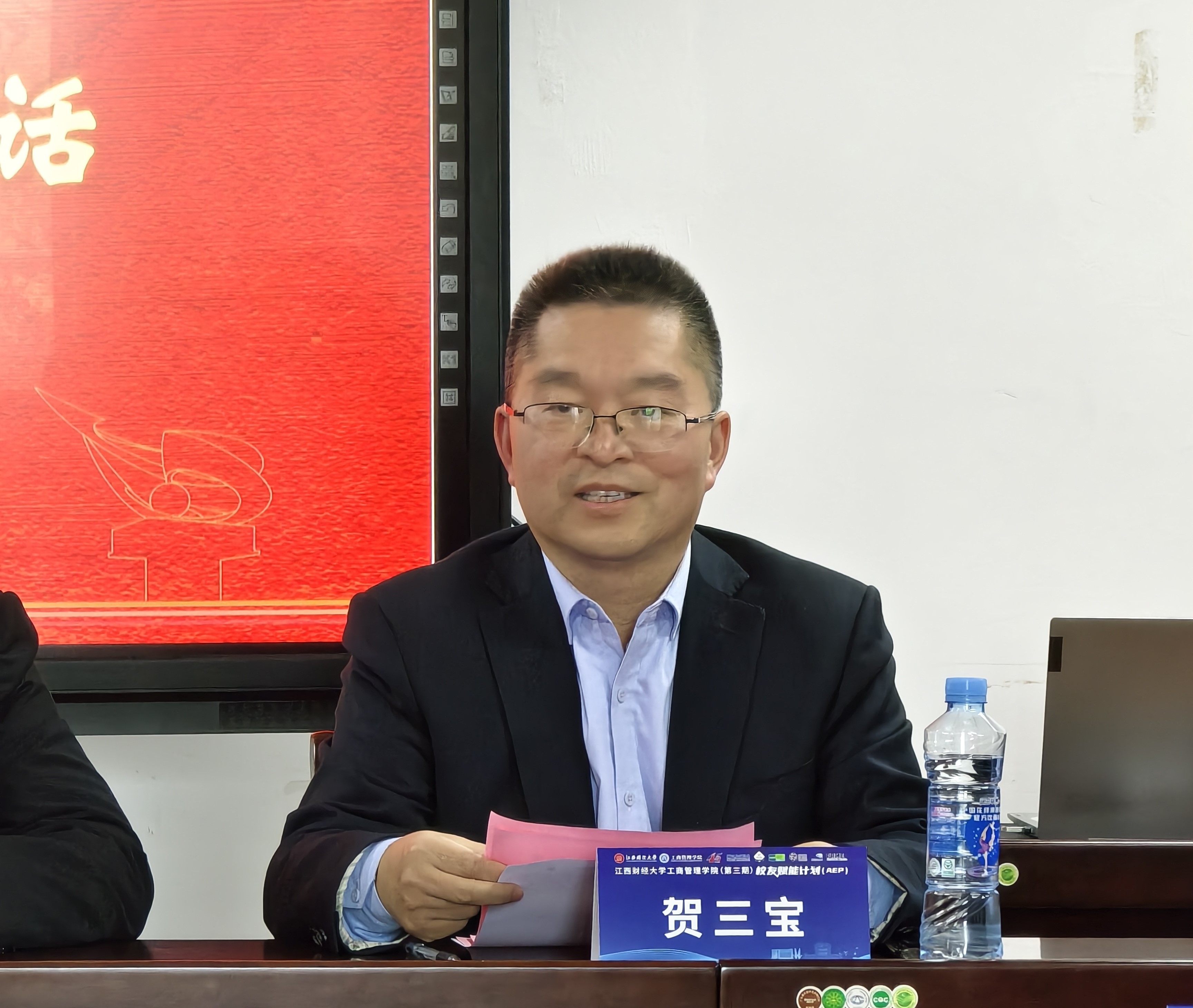 10月25日,江财工商第五期校友赋能计划(AEP)开班仪式在麦庐园北区中至大楼317会议室举行。学校校友联络服务中心主任夏贤锋,工商管理学院院长胡海波,学院党委书记贺三宝、副书记周海燕,学院副院长胡海胜等出席仪式,来自全国各校友分会推荐的26位校友学员参加仪式。