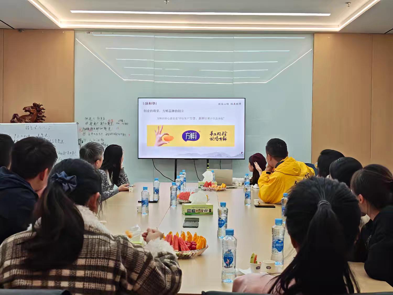 在会议交流环节,企业负责人通过PPT演示,详细介绍了方鲜食品的管理体系与市场策略。双方围绕绩效管理等核心议题展开了热烈讨论,现场互动积极,思维碰撞活跃。部分MBA学员也结合自身行业经验进行了分享交流,实现了理论与实践的良性互动。