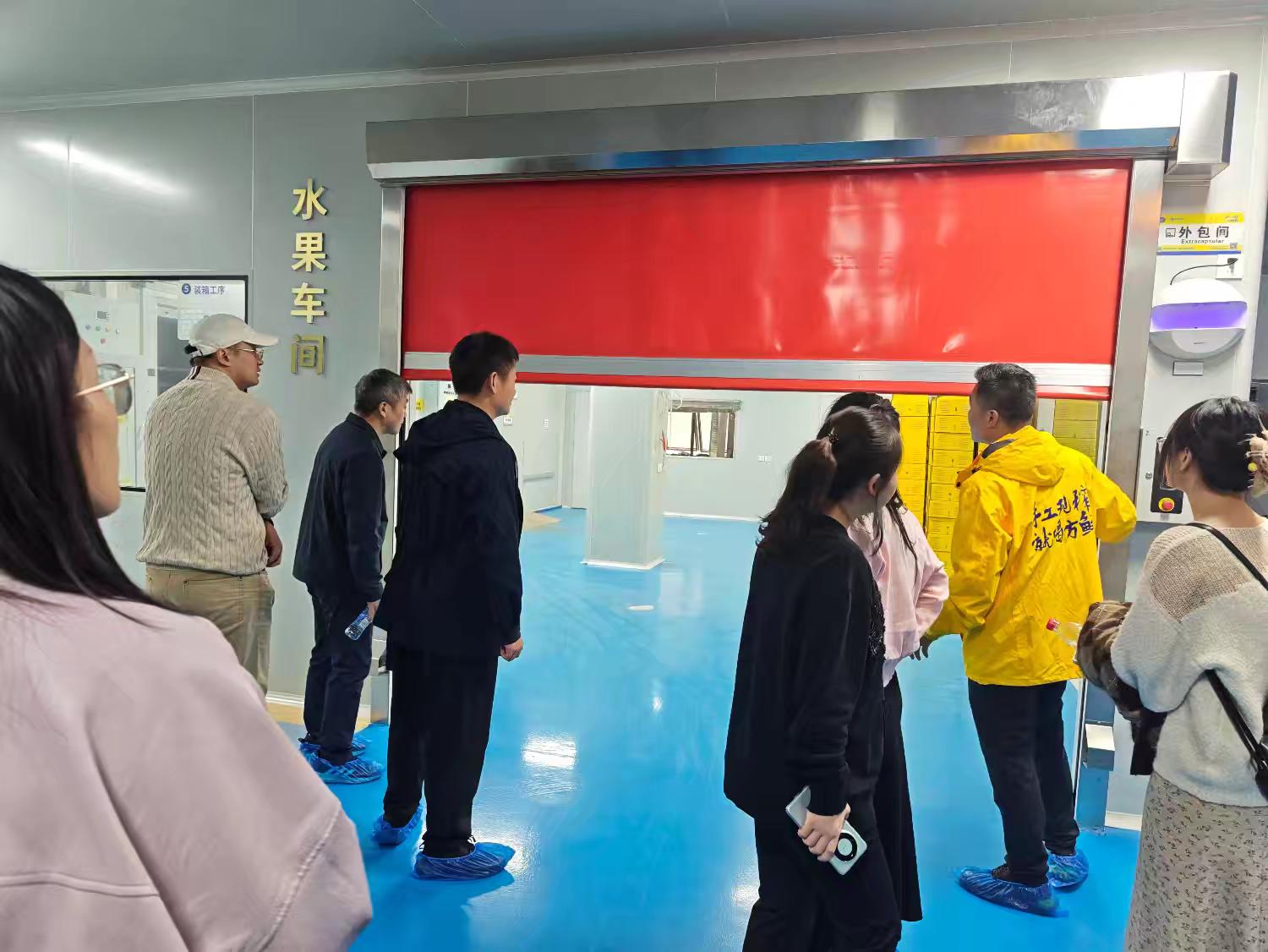 随后,师生们深入方鲜食品的水果加工车间和质量检测实验室进行实地考察。现代化的生产线有序运转,标准化操作流程规范严谨;实验室则配备了先进的检测设备,体现了企业对产品质量的高度重视。学员们近距离观察了食品生产与质量管控的实际操作,加深了对食品企业运营管理的理解。