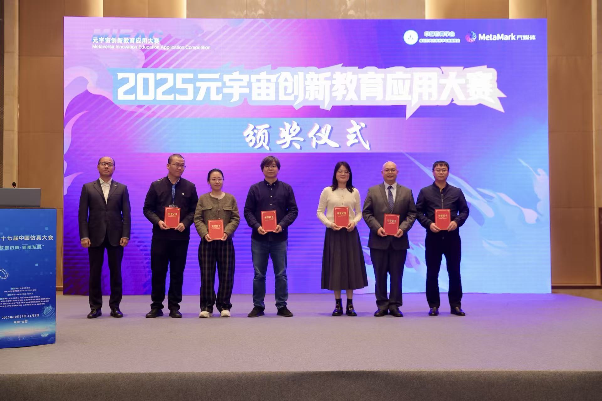 11月2日,江西财经大学工商管理学院朱建斌副院长、刘德军主任应邀参加中国仿真学会虚拟仿真教育教学专业委员会与北京元媒体文化传播有限公司联合主办的“仿真教育与元宇宙创新发展论坛”。论坛上“2025全国元宇宙创新教育应用大赛”评奖结果揭晓,我院刘德军老师、邹勇文教授报送的“旅游消费者行为决策虚拟仿真实验”获得大赛“实验实训应用”赛道二等奖,同时获得“全国优秀虚拟仿真教育教学应用项目实验平台”荣誉。