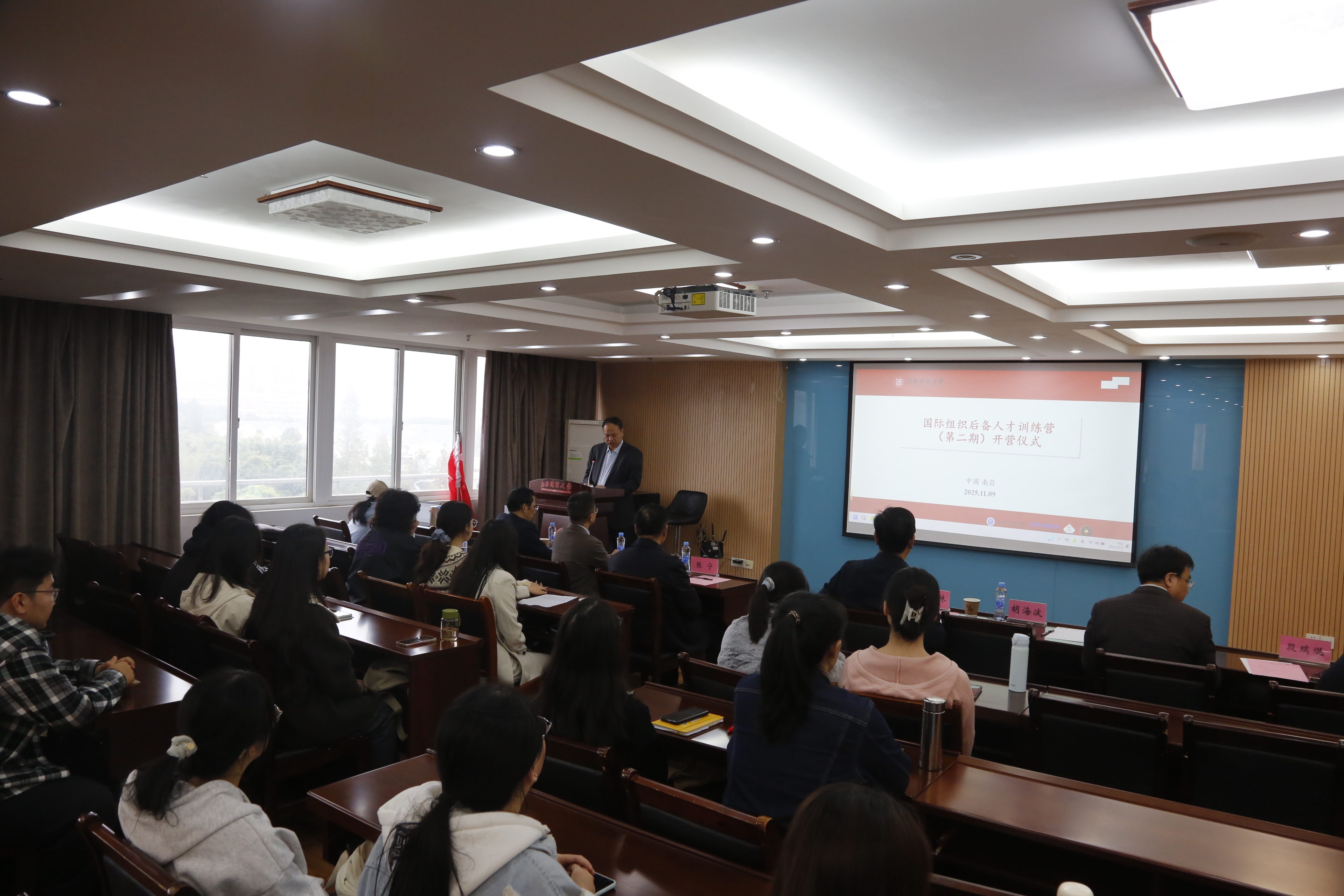陆淳鸿代表承训单位作表态发言。他指出,工商管理学院高度重视国际化人才培养,将充分发挥学科优势和师资力量,全力支持训练营的教学与实践环节。他鼓励学员珍惜机会,积极参与课程与交流活动,在学习中提升跨文化沟通能力与国际治理素养,为未来走向国际组织、服务国家战略奠定坚实基础。