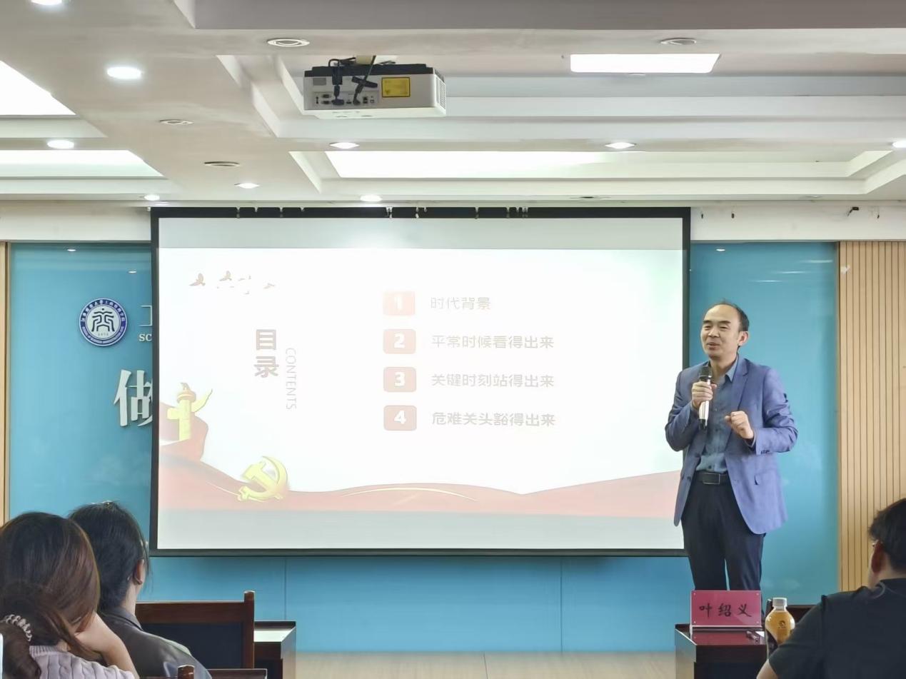 11月16日,工商管理学院第33期党校培训班第四次理论课程于麦庐园中至大楼416会议室如期举行,本次课程由江西财经大学学生工作部(处)部(处)长、副教授、硕士生导师叶绍义作为主讲人,围绕“新时代学生党员如何发挥先锋模范作用”展开讲授。