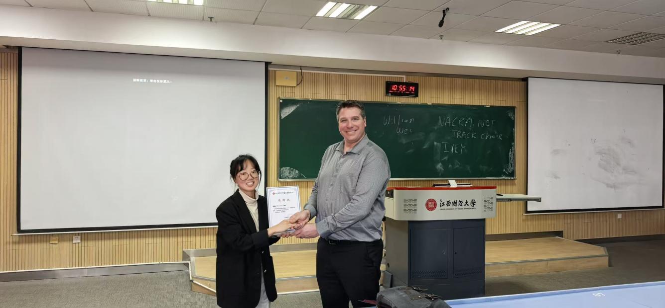 讲座结束后,曹琪博士为Mike教授颁发感谢状。