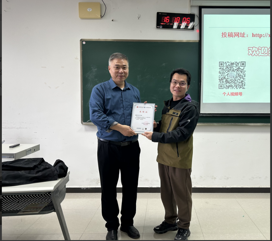讲座结束后,明晓东老师为张跃胜教授颁发感谢状。