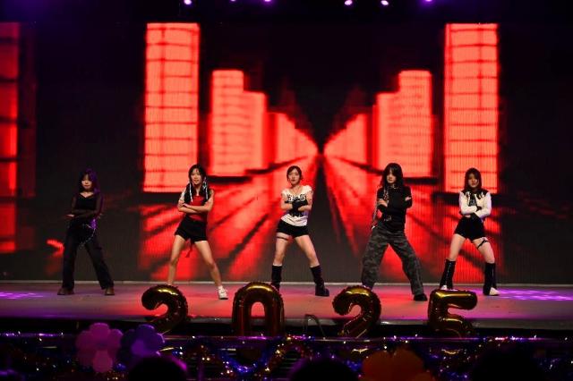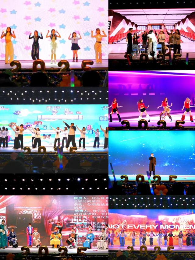 舞蹈队再秀《Likey》,甜美元气的舞台引全场欢呼。社团小品《爆米花不吃,就要吃瓜》围绕恋人重逢展开,巧妙设计“吃瓜群众”从旁协助,情节笑料频出而又暗含温情。人力252《闪耀歌舞纪》在清爽甜美与热烈动感中无缝切换,满满的唱跳让现场洋溢着青春气息。工商241带来舞蹈《Jump》,充满力量的流行舞动作与默契配合,传递工商活力。MBA252带来独唱《夜空中最亮的星》,歌者以深情的嗓音,唱出对未来的坚定与对彼此的祝愿。物流251《fatal diamond》舞蹈串烧,飒爽舞姿承载蓬勃张力,展现工商学子的多元风采。工商252小品《甄嬛外传》以“‘寝殿’卫生风波”重构经典剧情,妙趣横生,掌声不断。